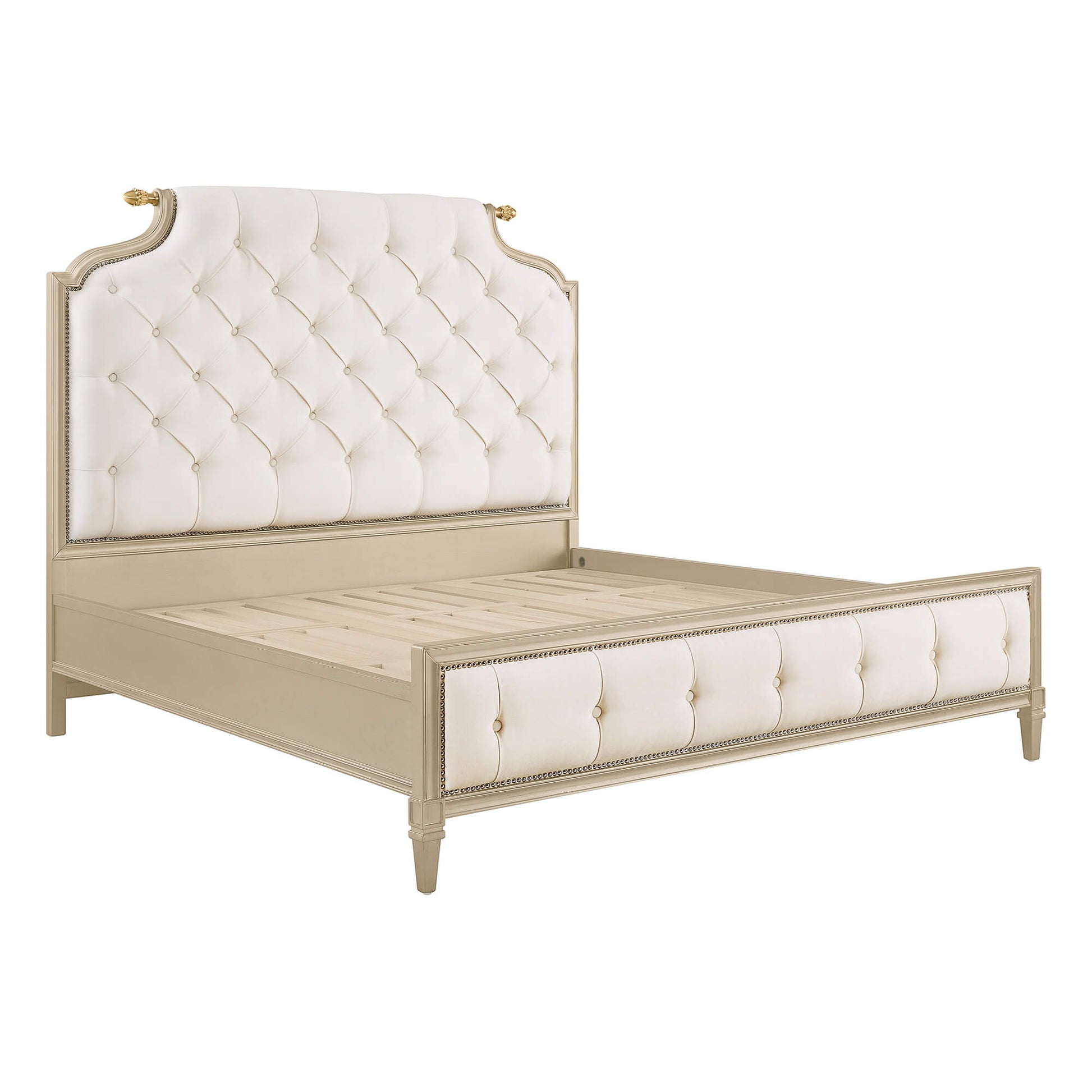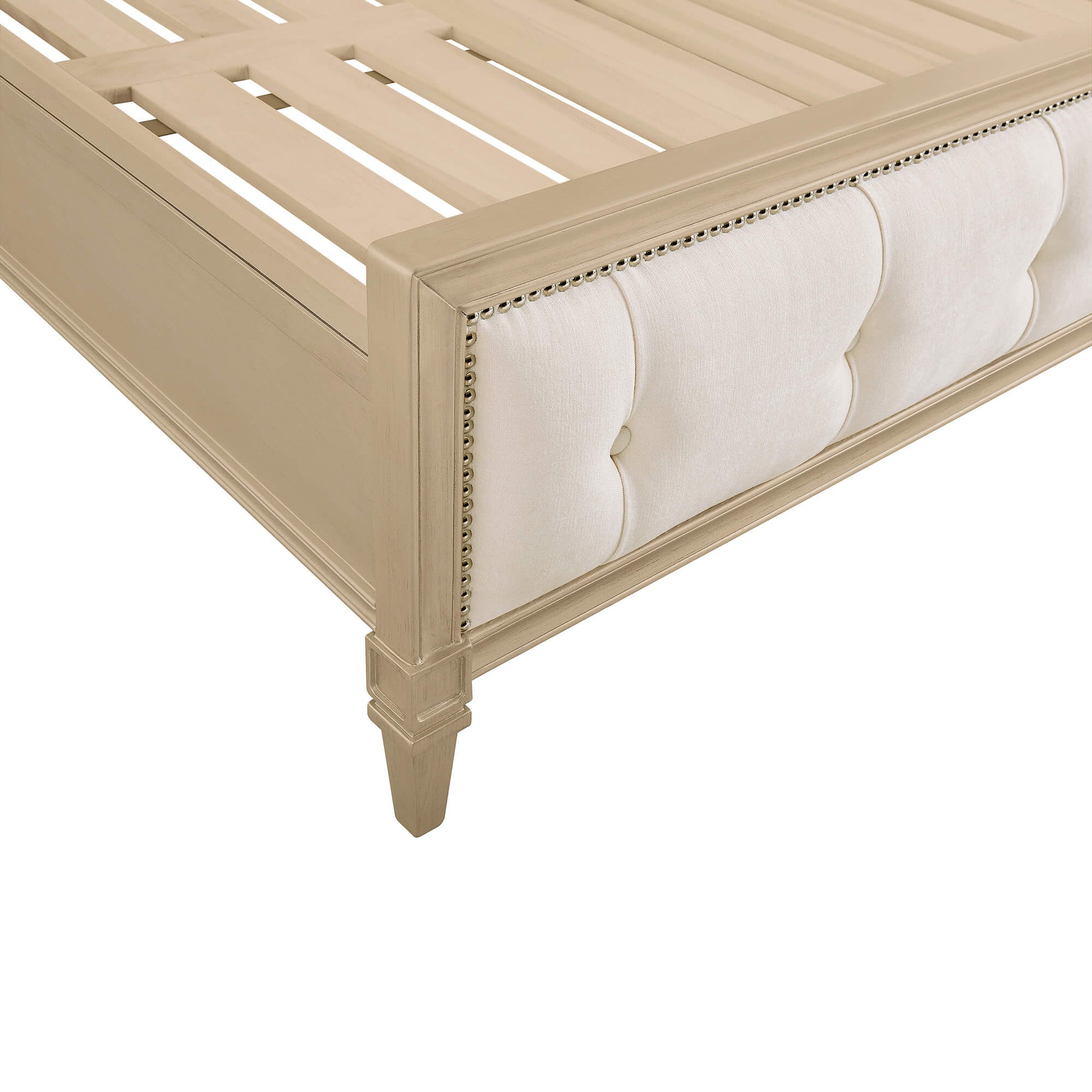 - Elegant Champagne Finish - Champagne silver painted solid wood offers a soft metallic glow, enhancing classic American elegance with a refined, upscale presence.