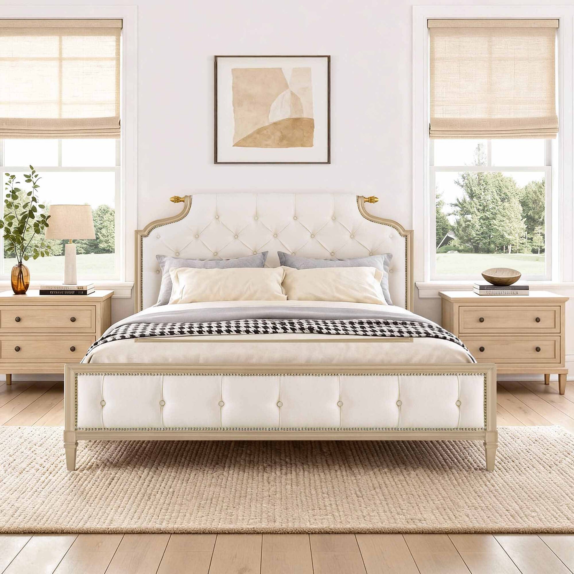 - Luxurious Upholstered Panels - Cream stain-resistant upholstery pairs refined texture with everyday practicality, maintaining a pristine, inviting look over time.