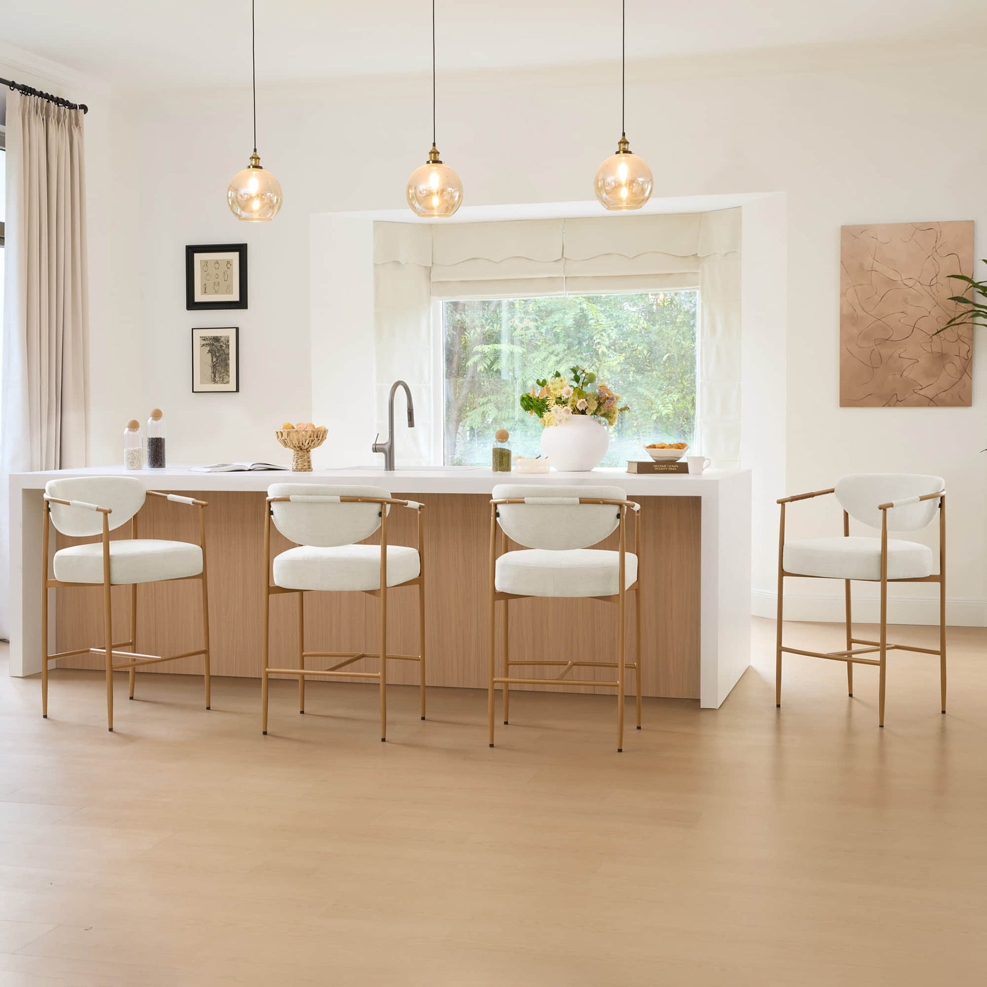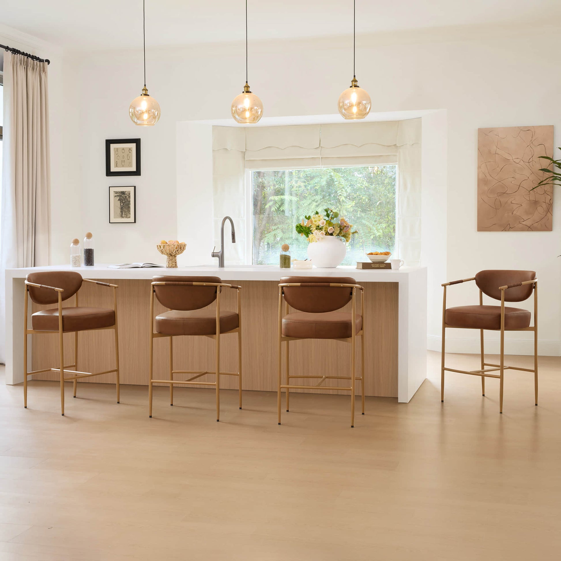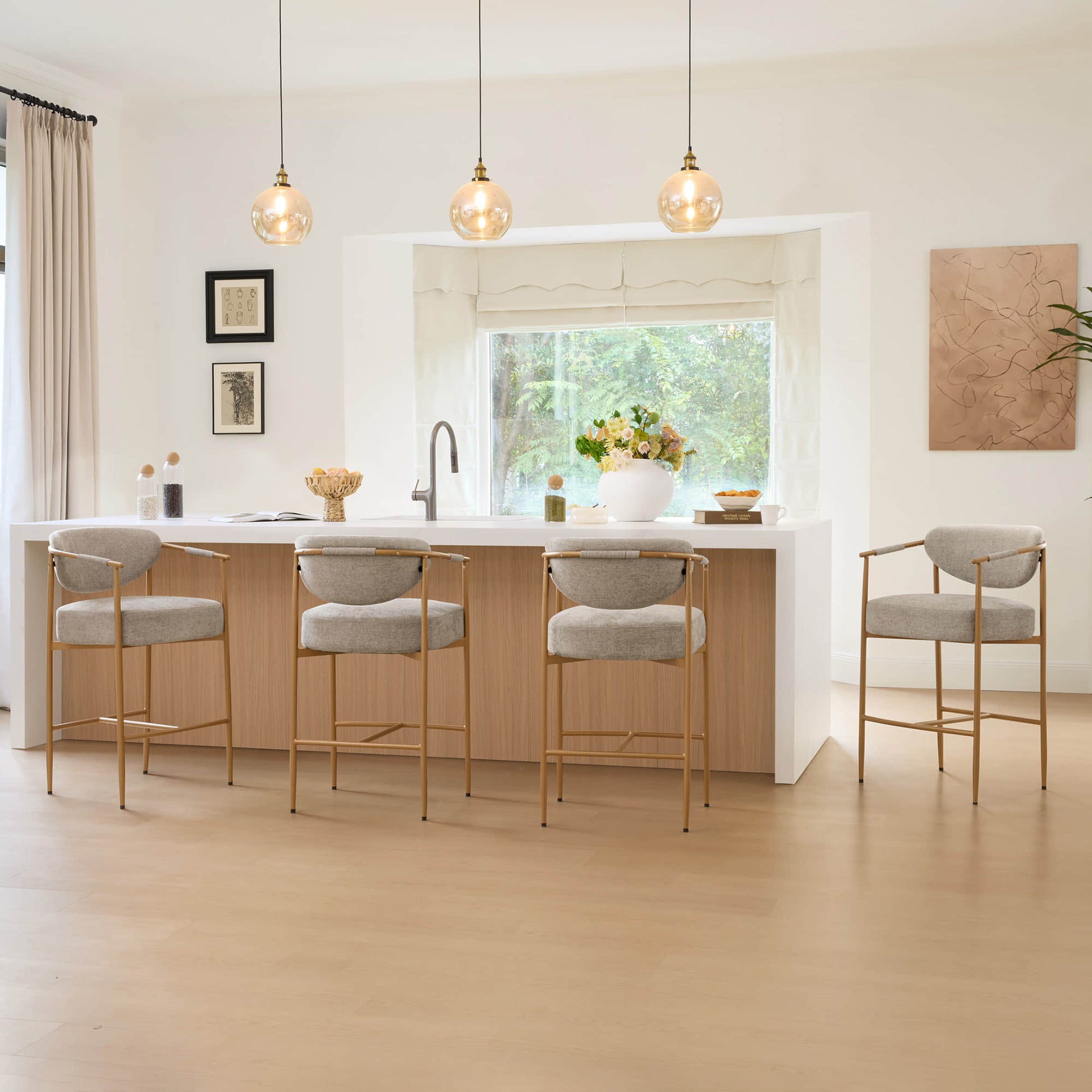 Sleek, sculptural, and surprisingly cozy — the Jade Counter Stool makes every sit feel intentional. The curved backrest and thick foam seat offer a supportive hug, while handwoven rope accents add warmth and texture. Framed in gold-finished metal, it brings quiet sophistication to your kitchen island or bar space. Durable, easy to care for, and built to last for years of daily use.