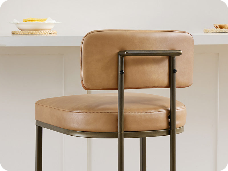 Wrapped in smooth faux leather or a textured linen-look fabric, with a gently curved back that feels like a little hug every time you sit down—subtle, warm, and just right.
