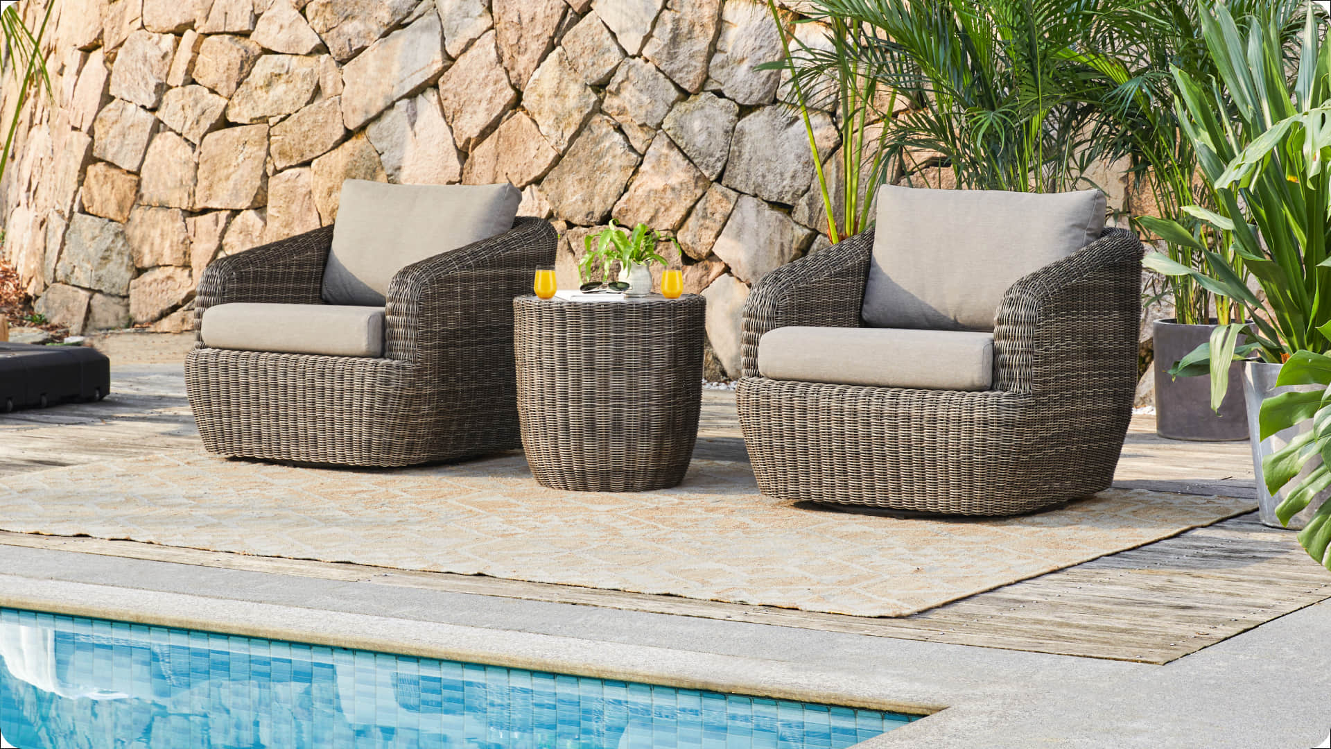 All-weather PE rattan offers lasting durability while maintaining a textured, refined outdoor look.