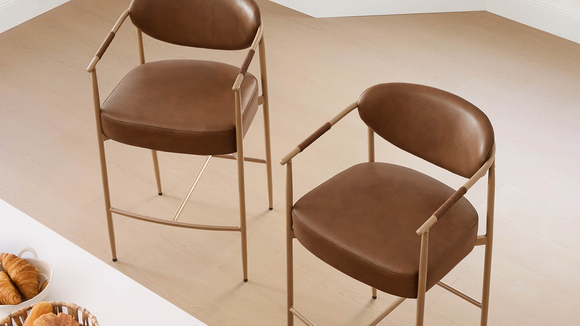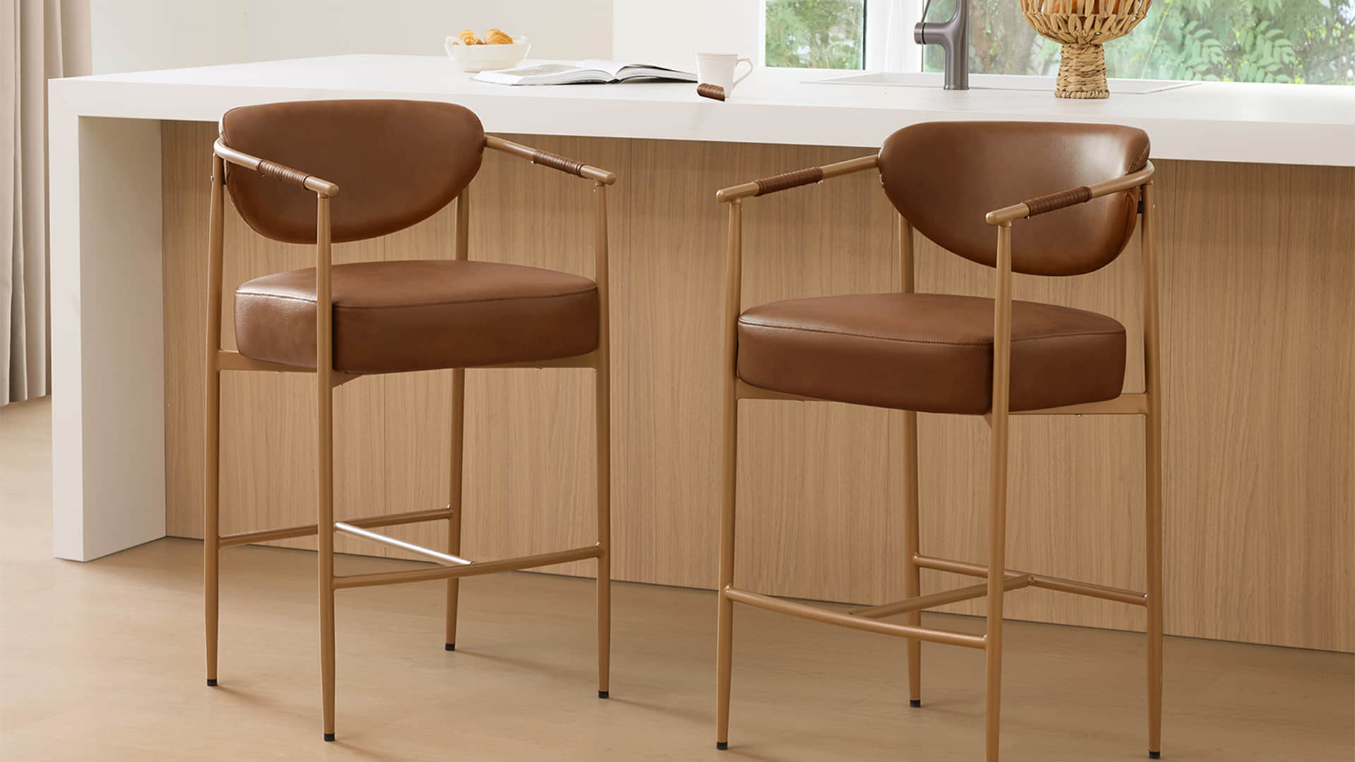 Sleek, sculptural, and surprisingly cozy — the Jade Counter Stool makes every sit feel intentional. The curved backrest and thick foam seat offer a supportive hug, while handwoven rope accents add warmth and texture. Framed in gold-finished metal, it brings quiet sophistication to your kitchen island or bar space. Durable, easy to care for, and built to last for years of daily use.