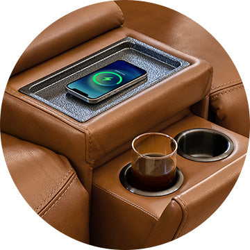 Meet the console that charges, stores, and keeps drinks close at hand — your ultimate sofa sidekick