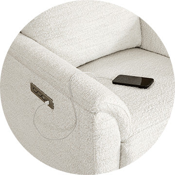 The Lulla recliner offers ultimate relaxation with a 270° swivel, smooth glide, and electric recline up to 135°. Its quiet, seamless mechanism adjusts effortlessly, maintaining a peaceful environment.