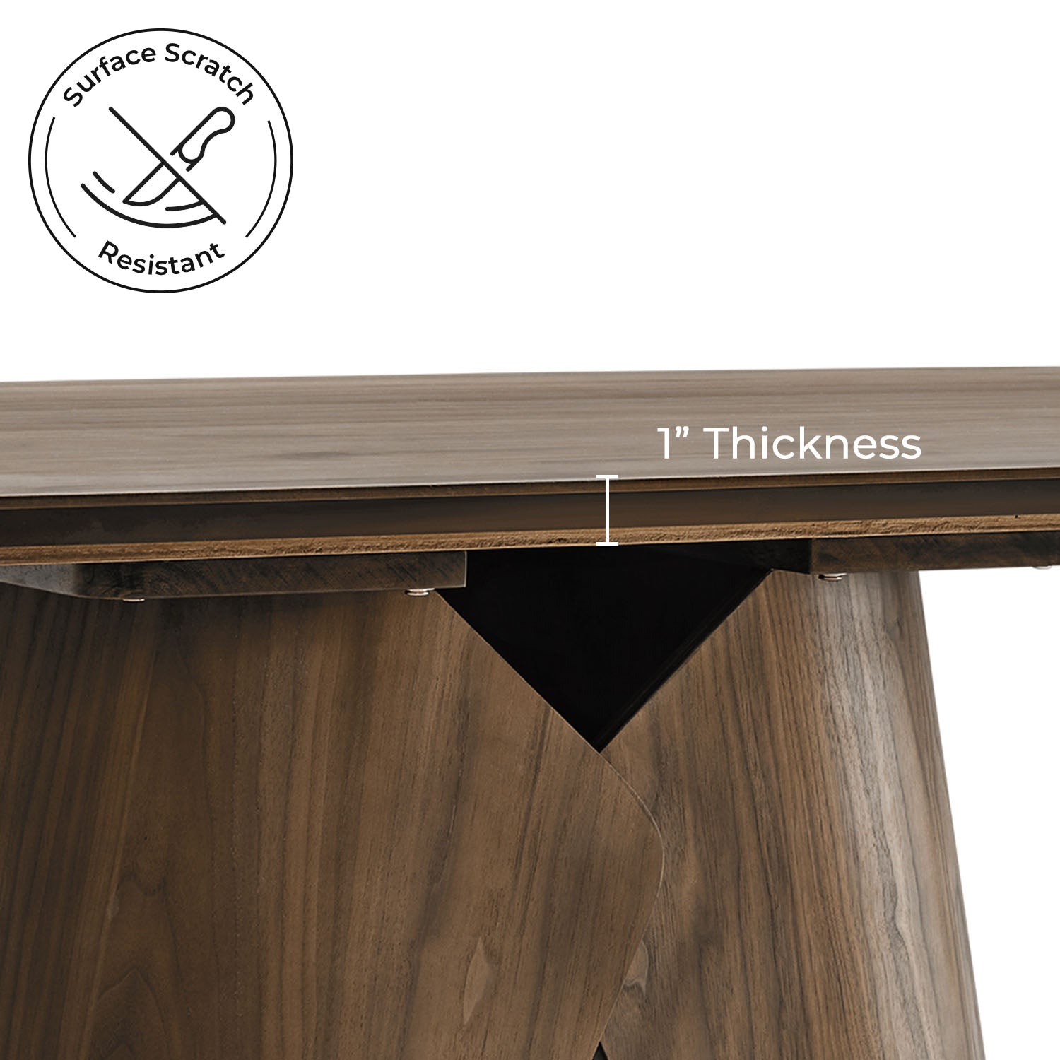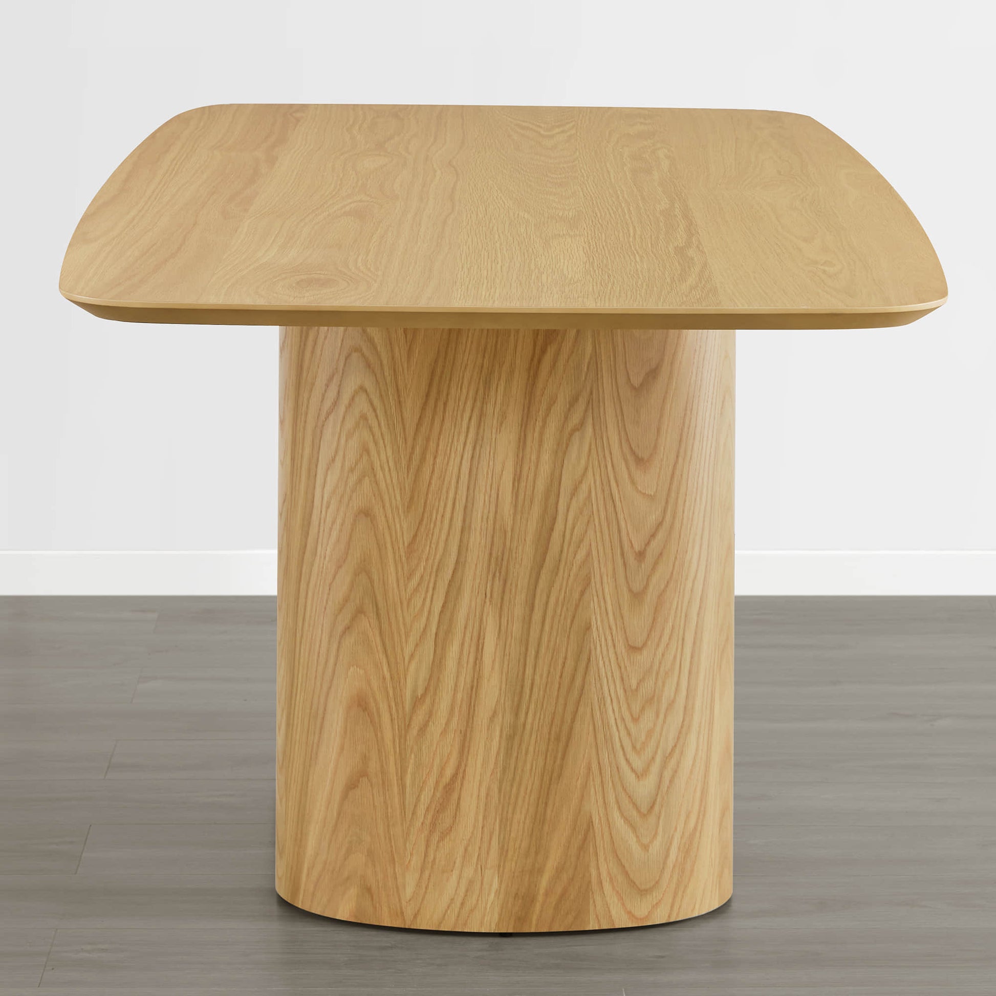 The 1.0" thick tabletop feels steady through everyday meals or work. Its water-resistant and scratch-resistant veneer wipes clean easily, while the sculptural pedestal base keeps the space open, balanced, and comfortable.