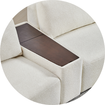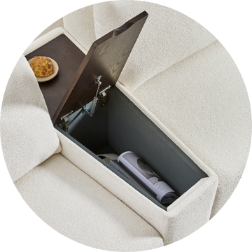The Grace Console Table’s unique trapezoid shape brings a playful and lively touch to any room. Designed to complement the Grace Sofa, the table features a padded outer layer — the ideal spot to rest your arm — as well as a hidden storage compartment for convenience.
