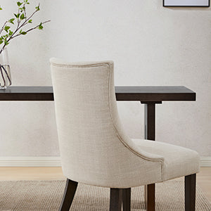 This dining chair features a romantic aesthetic that embraces the sculptural curves and understated glamour of 1940s furnishings. Handcrafted by artisans, curved legs are hand-painted and hand-distressed in brushed espresso finishing that replicates a naturally weathered appearance.