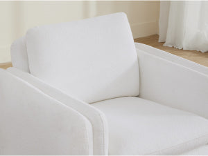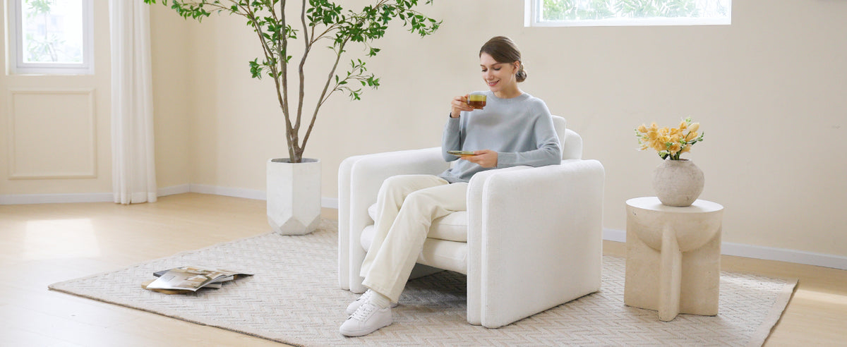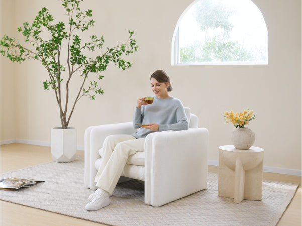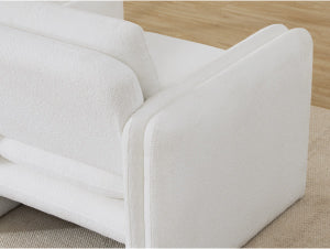 The Kallen accent chair is the epitome of contemporary relaxation, featuring a clean-lined silhouette wrapped in a textured boucle fabric.