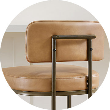 Wrapped in smooth faux leather or a textured linen-look fabric, with a gently curved back that feels like a little hug every time you sit down—subtle, warm, and just right.
