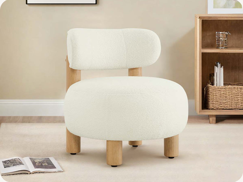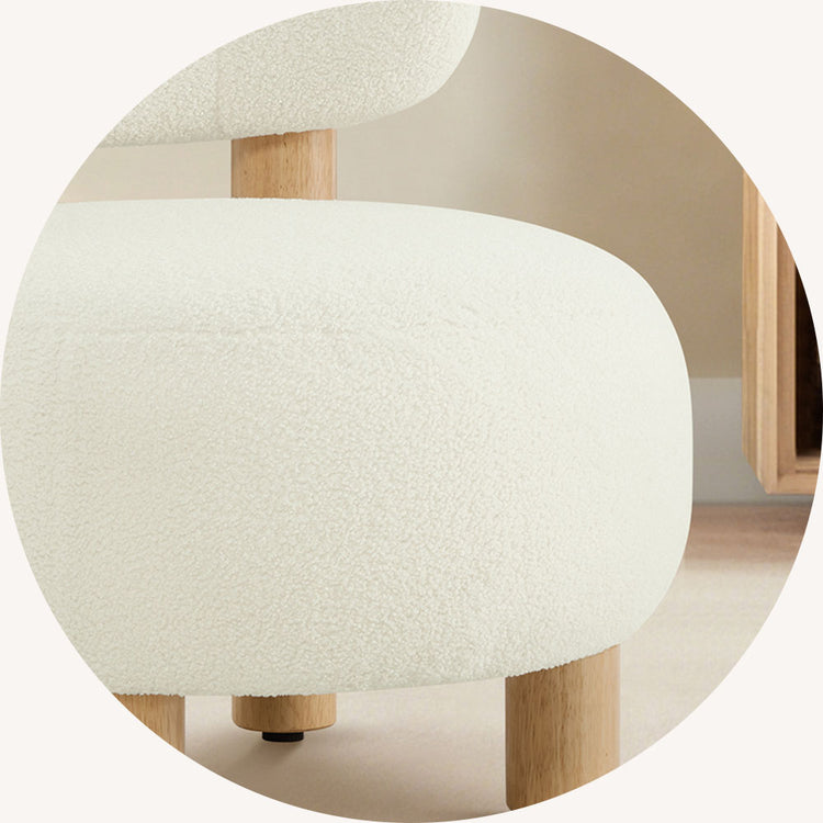 Tuck this pillowy cutie beside your sofa – its rounded, huggable shape instantly makes chats cozier. Friends melt into sherpa clouds while pocket springs work magic. Sturdy wooden legs handle lively debates.