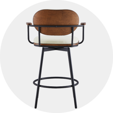 Mid-century modern swivel bar stools with padded seats and wood accent armrests - CHITA Living