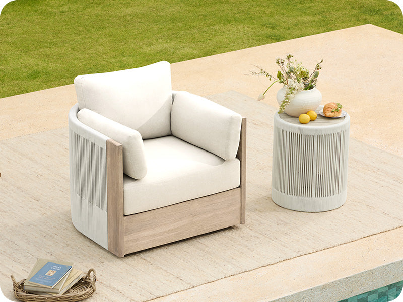 Rain, sun, or wind? The Clover doesn’t flinch. Crafted from durable, weather-resistant acacia wood (FSC-certified), it’s built to last while maintaining its natural charm.