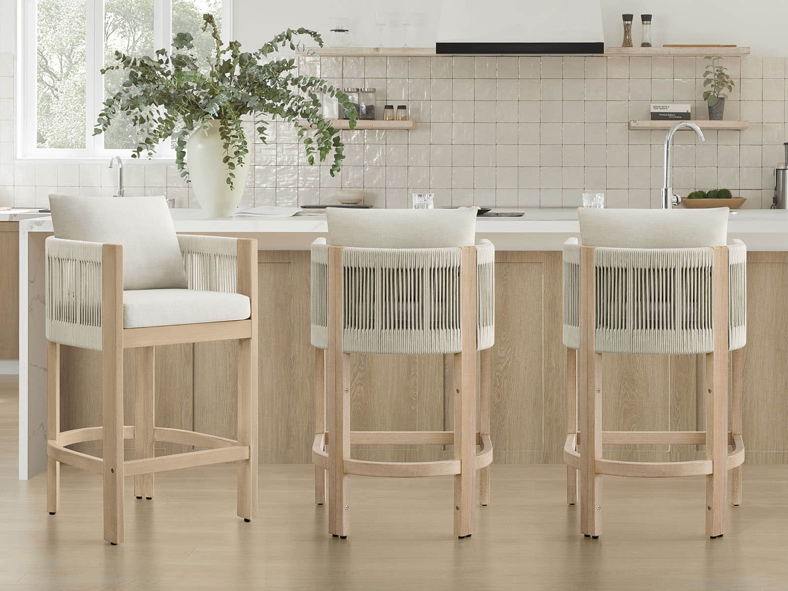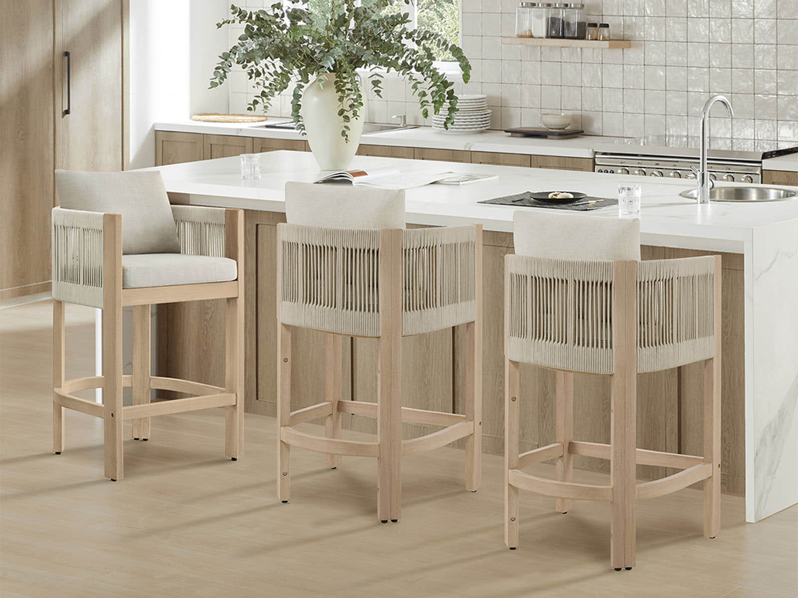Clover’s barstool blends laid-back Boho vibes with thoughtful engineering for everyday life. The handwoven rope adds textural charm, while the acacia wood frame brings natural warmth and durability. Cushions are thick, soft, and easy to care for, making long chats at the kitchen island or poolside cocktails a breeze. Designed for homes that love style and function, it’s a versatile piece that moves seamlessly from indoor comfort to outdoor moments.