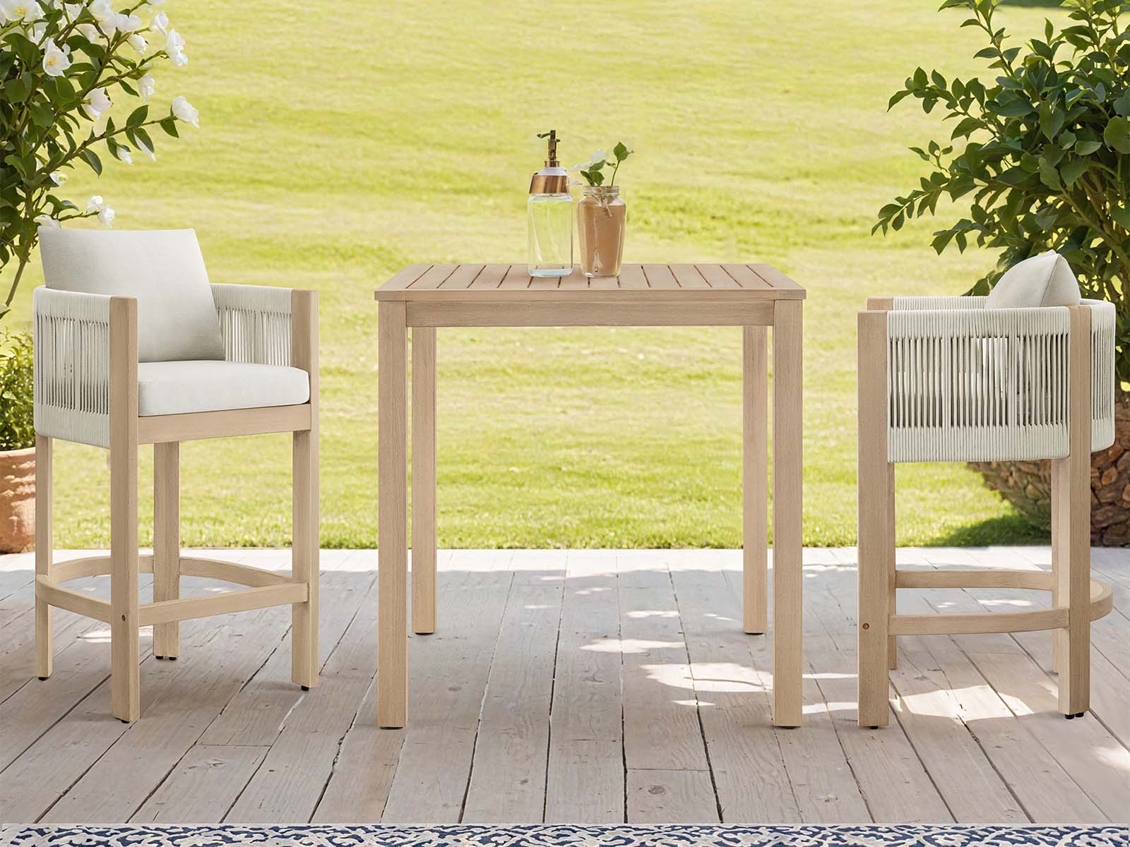 Clover blends durability with natural elegance. Featuring a sturdy solid wood frame, water-resistant fabric & a weather-ready finish, it stands up to sunshine & rain while keeping its style intact. Ideal for patios, balconies, and backyard bars.