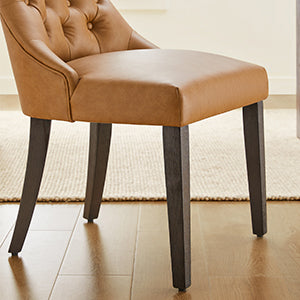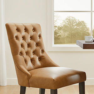Designed with deep button-tufted and barrel-curved back, this modern farmhouse dining chair offers exceptional comfort and style.