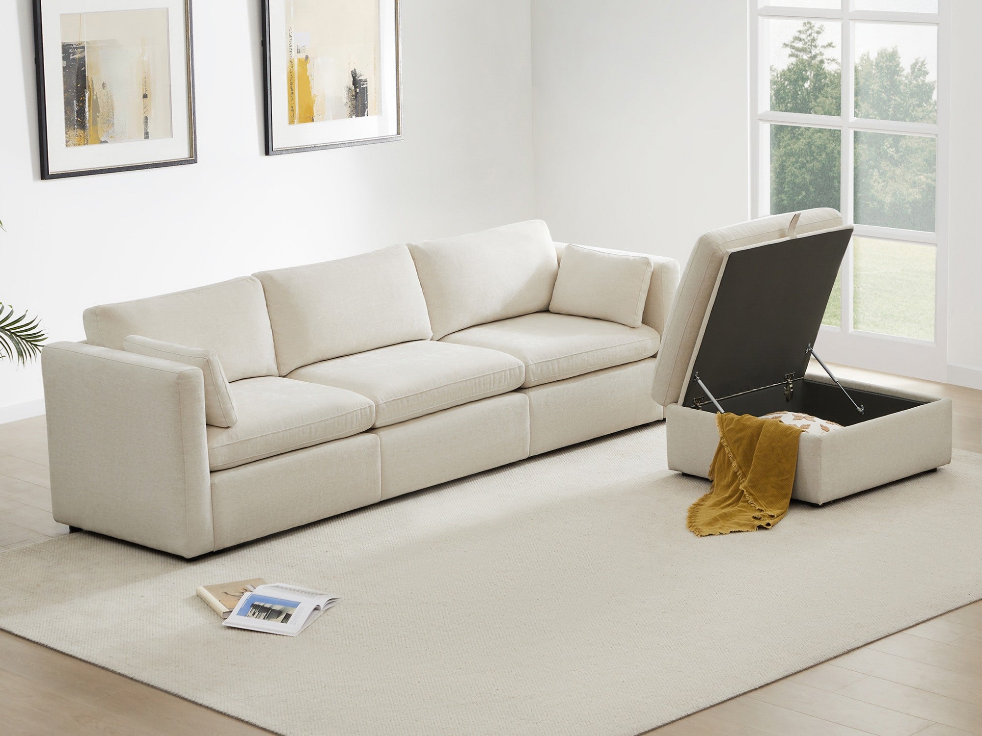 Lift up the ottoman top with a built-in smooth gas-lift mechanism to reveal plenty of out-of-sight storage.