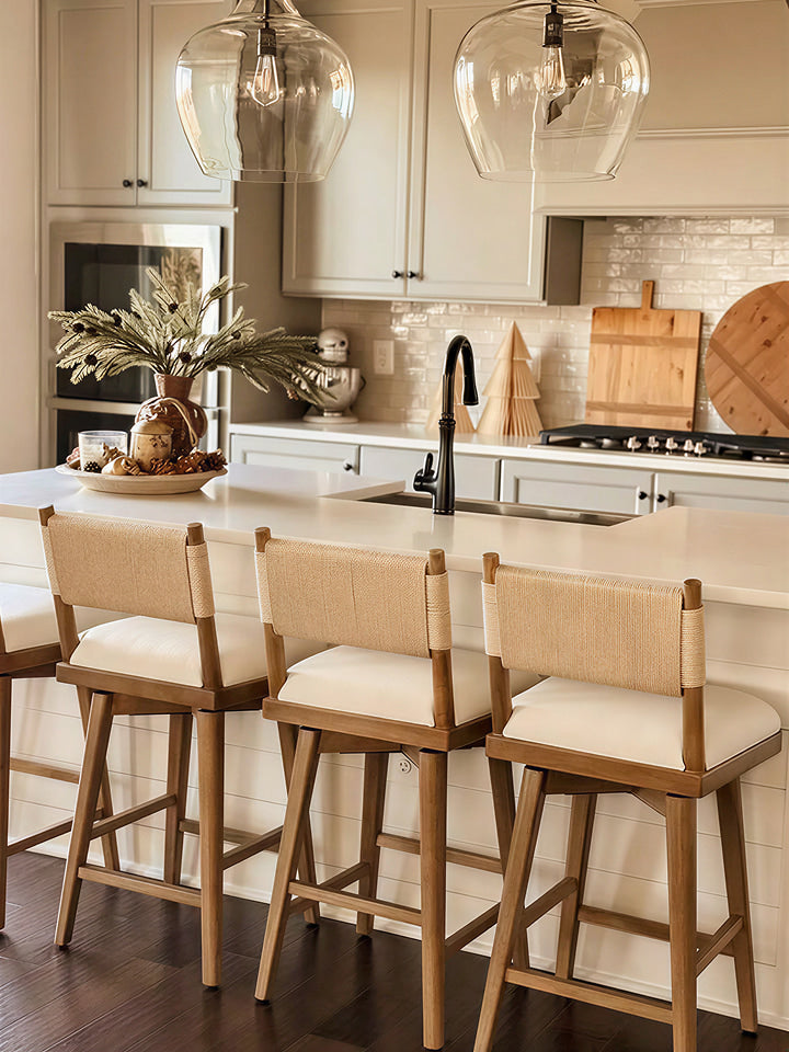 When choosing seating, keep in mind the size of your dining table and the amount of space around it. This usually means smaller tables can take 4-6 chairs, while larger tables can fit 6-8 chairs. Make sure to have about 24 inches between each chair for comfortable seating. For barstools, measure your bar or counter height and select stools with adequate leg room; this is usually about 10-12 inches from the seat to the counter.