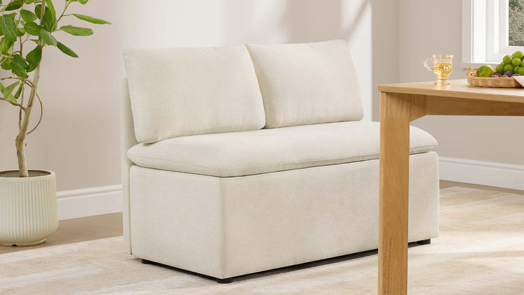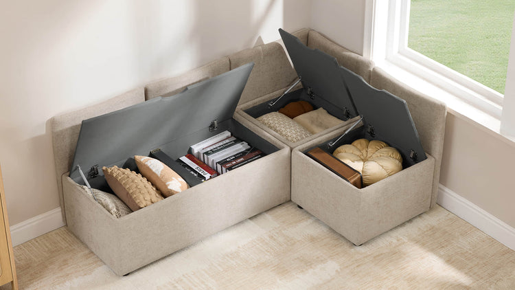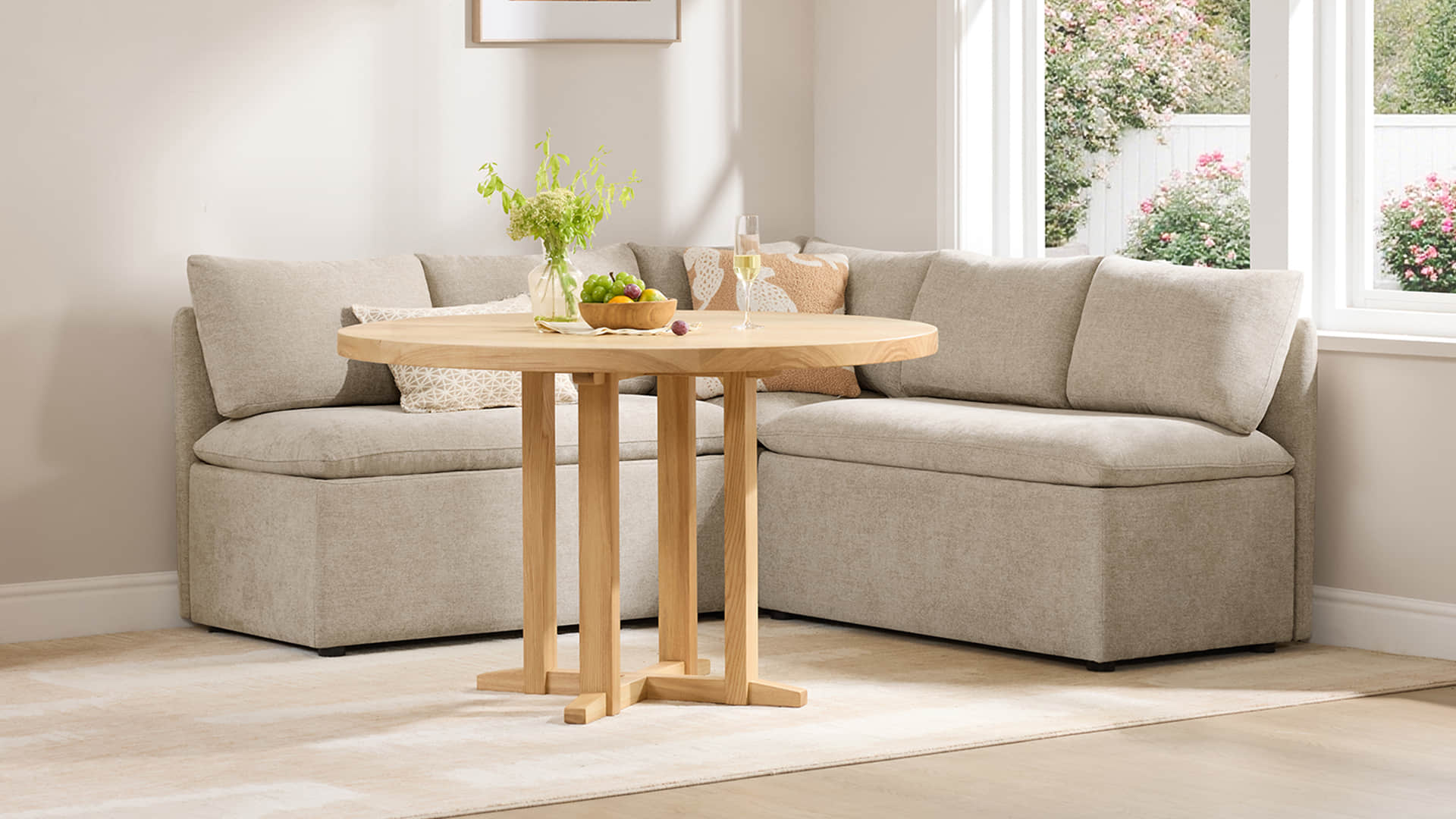 Create a warm, inviting dining corner with Lila — a banquette designed for gatherings, slow mornings, and everything in between. Each piece canbe connected to form a L-shape that fits the best for your space and seats more people than traditional chairs. Soft, reversible cushions offer sink-in comfort, while smooth-lift storage keeps everyday essentials tucked neatly away. Crafted with kiln-dried wood and certified materials, this L-shaped dining banquette brings lasting ease, thoughtful function, and a grounded modern look to your dining room.