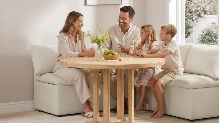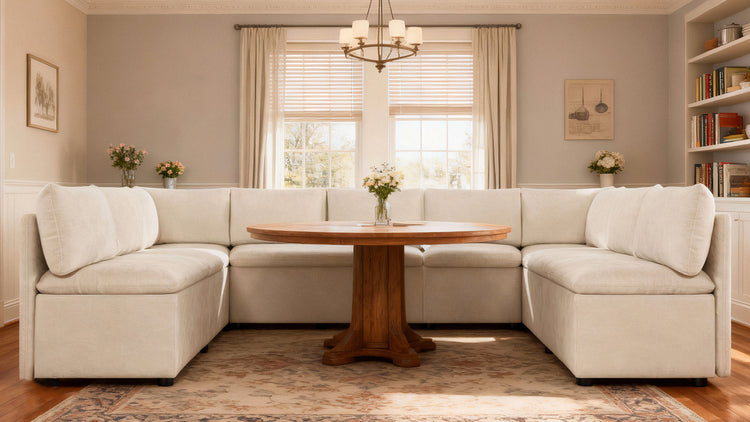 • Modular Space-Saving Design: Configurable pieces create an L-shaped dining nook that uses less space than chairs while seating more people comfortably.