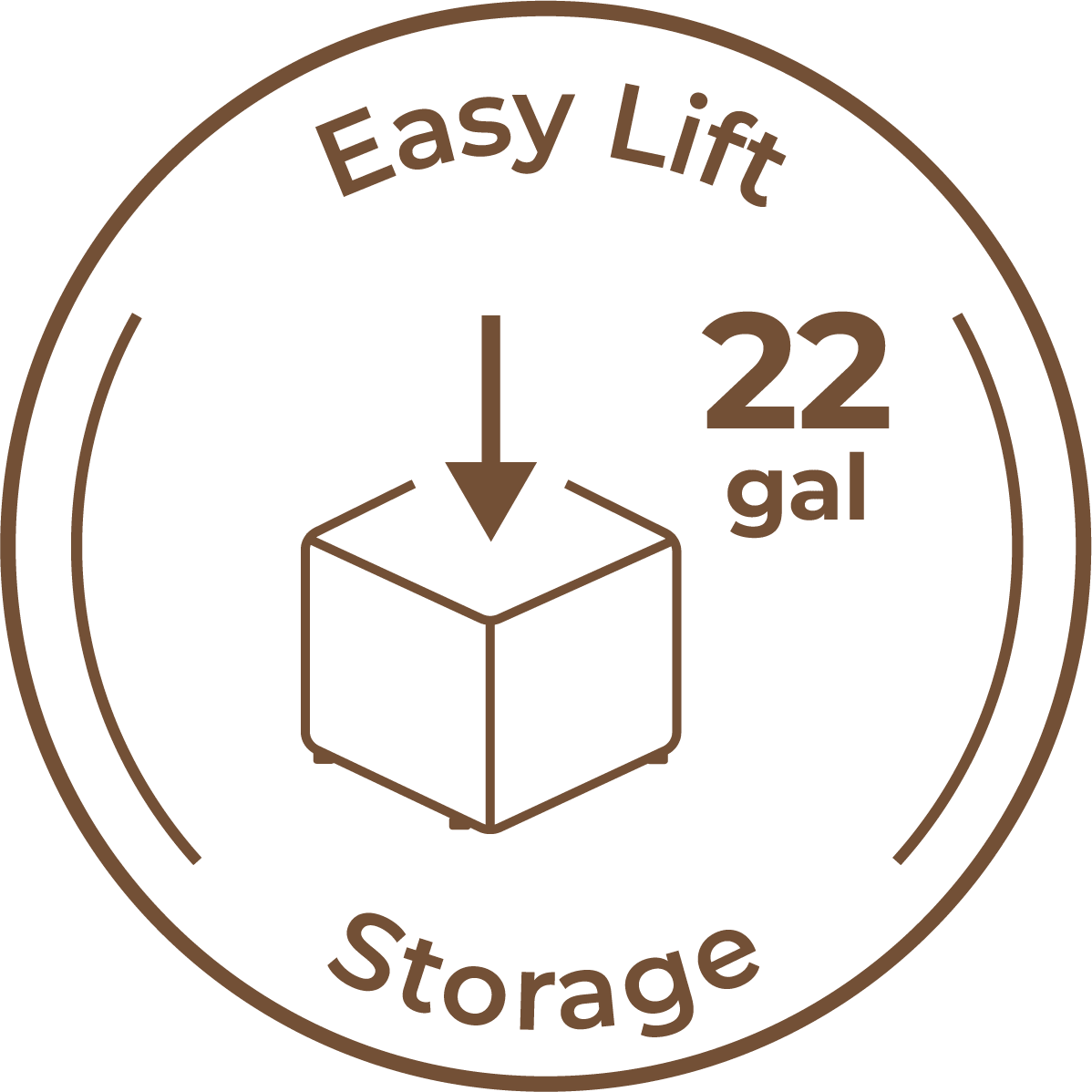 After the meal, lift the smooth gas-strut lids to stash board games, seasonal décor, or extra blankets into the 22 gal storage space without breaking the moment.