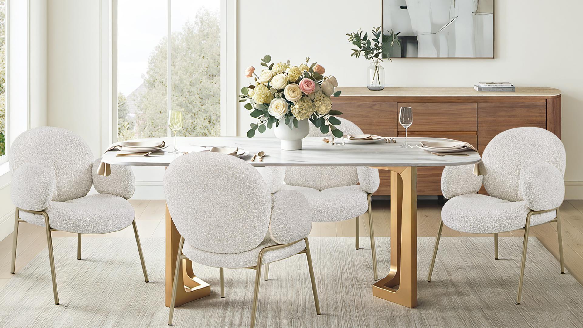 The Teresa dining table transforms dining into a joyful, space-savvy experience. Eco-friendly stone tops and sleek metal bases bring durability and warmth. It adapts to your lifestyle—making every meal a moment to connect, laugh, and share.