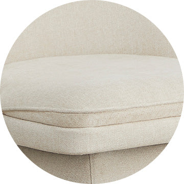 The layered seat cushioning that invites you to sit, paired with gently contoured arms that echo its sculpted elegance.