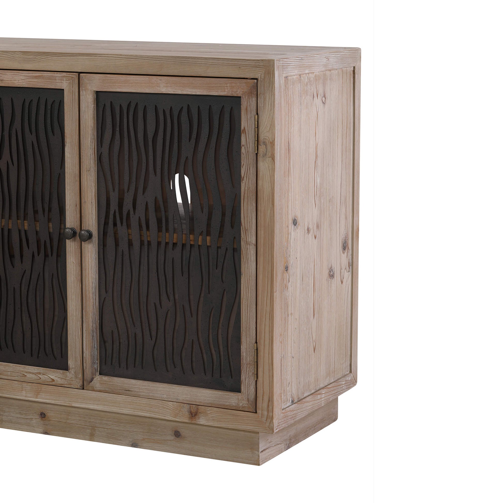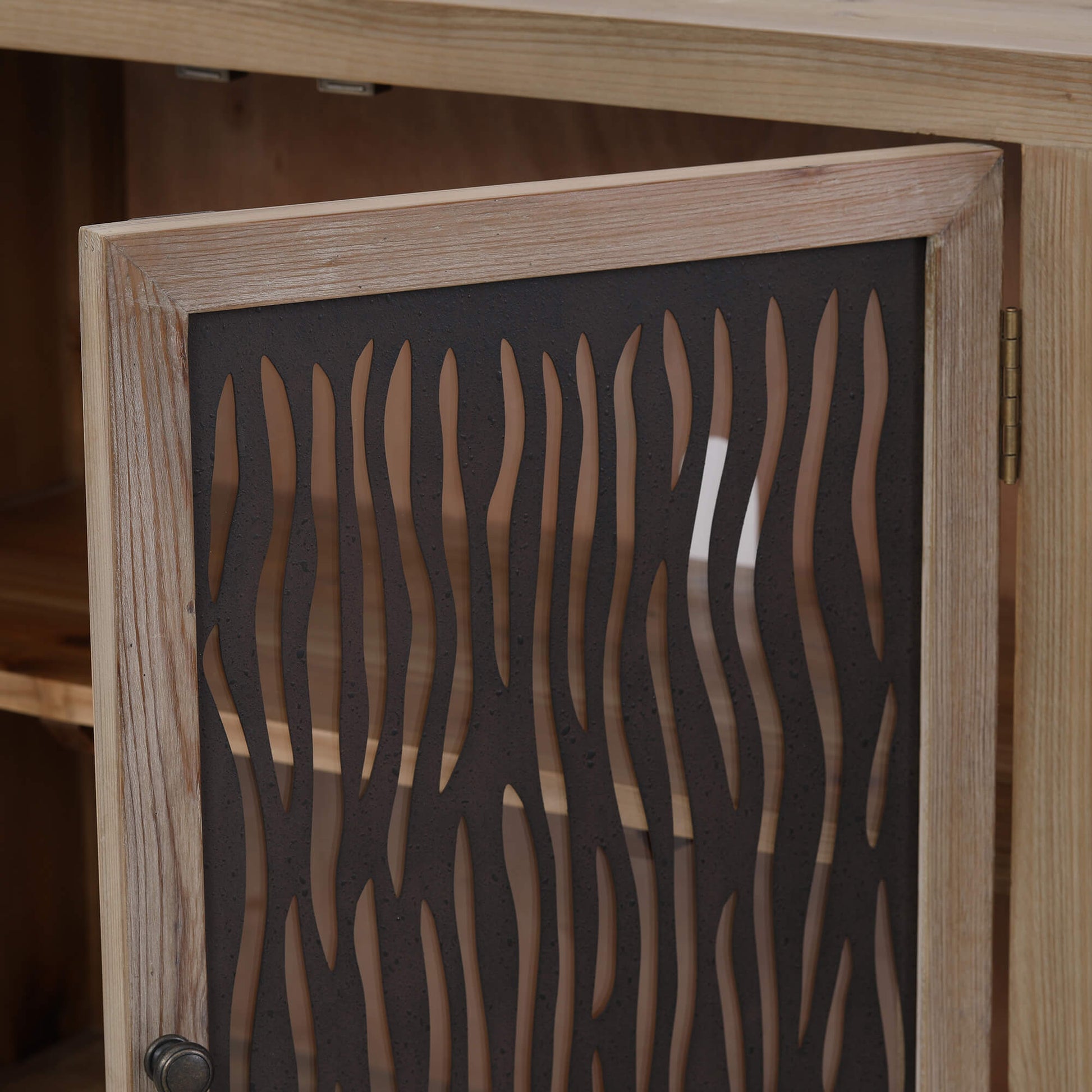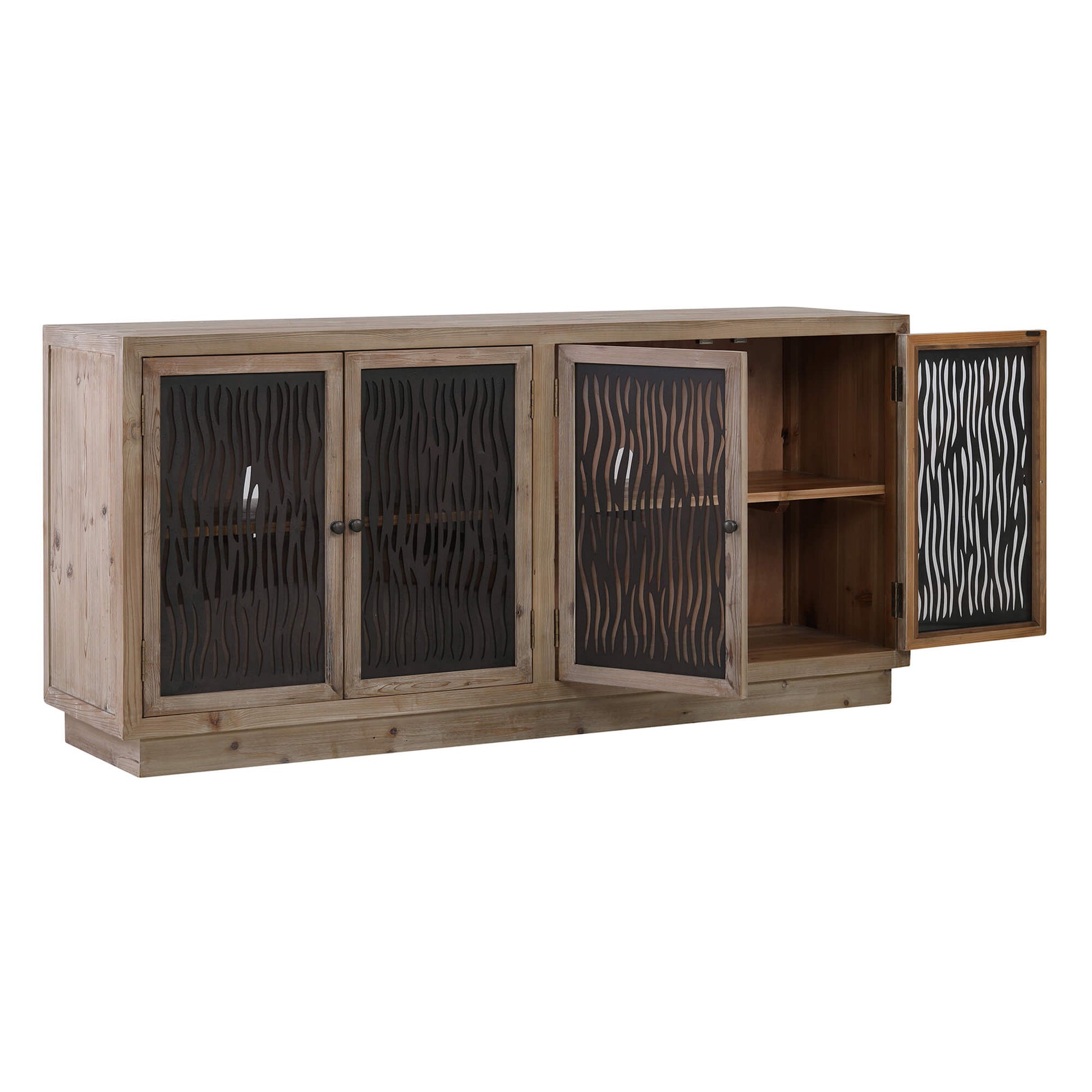 This Ethan sideboard blends modern farmhouse warmth with refined American vintage character. Made from old cedar wood, the cabinet showcases natural grain movement and a timeworn, authentic presence. Antique-style round knobs complete the look with a subtle historical touch. Inside, generous shelving provides practical organization for serveware, décor, or household essentials. Classic yet expressive, this design anchors a room with enduring beauty and understated sophistication.