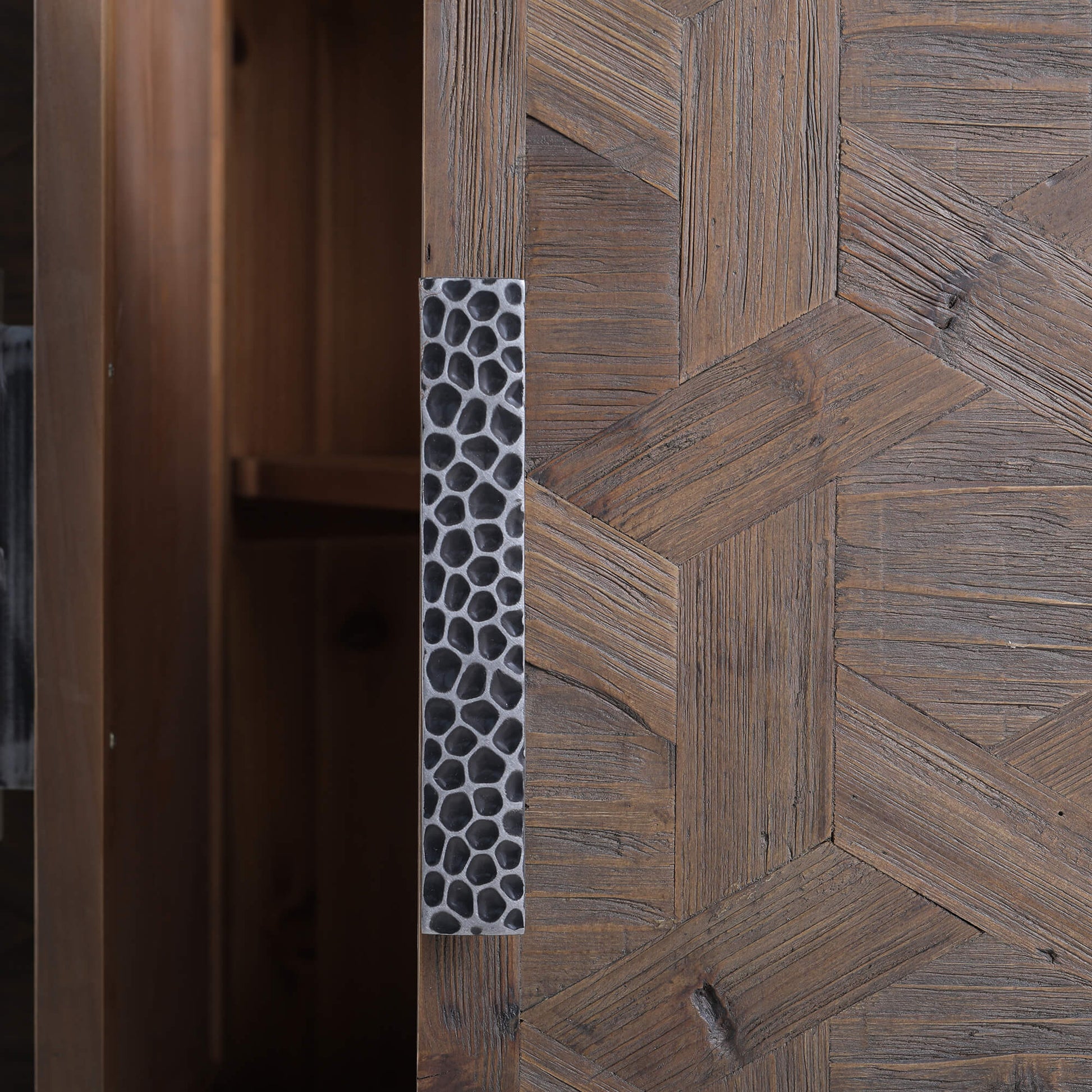 Rooted in rustic character and industrial authenticity, the Megan sideboard is crafted from reclaimed fir timber, each plank showing the unique grain, knots, and natural imperfections shaped by time. A hand-aged finish enhances its warm, weathered tones, while the geometric door fronts introduce a heritage-inspired, handcrafted aesthetic.Solid and weighty, this sideboard brings a storied presence to dining spaces, loft interiors, or any room seeking character-rich design.