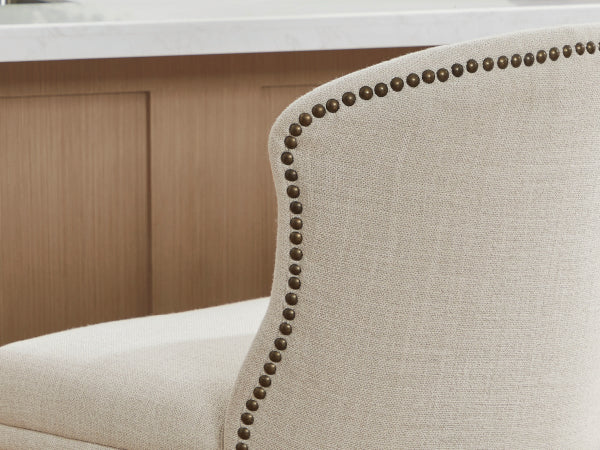 Antique brass nailhead accent trim brings sophistication to the overall look.