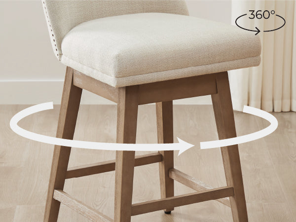 Avery swivel counter stool embraces with elegant-shaped curves and padded seat, which fully swivels 360 degrees, making dining and chatting much easier.