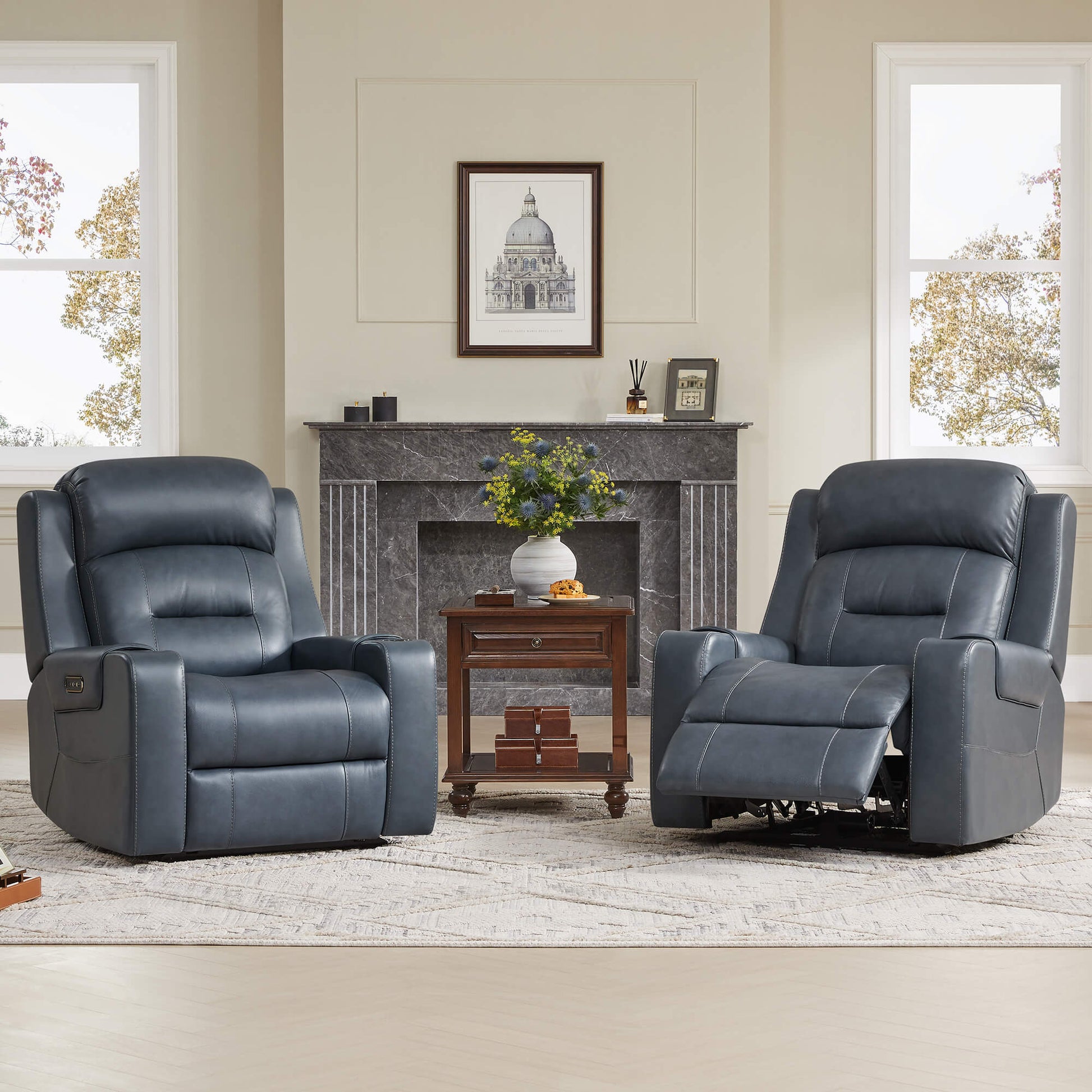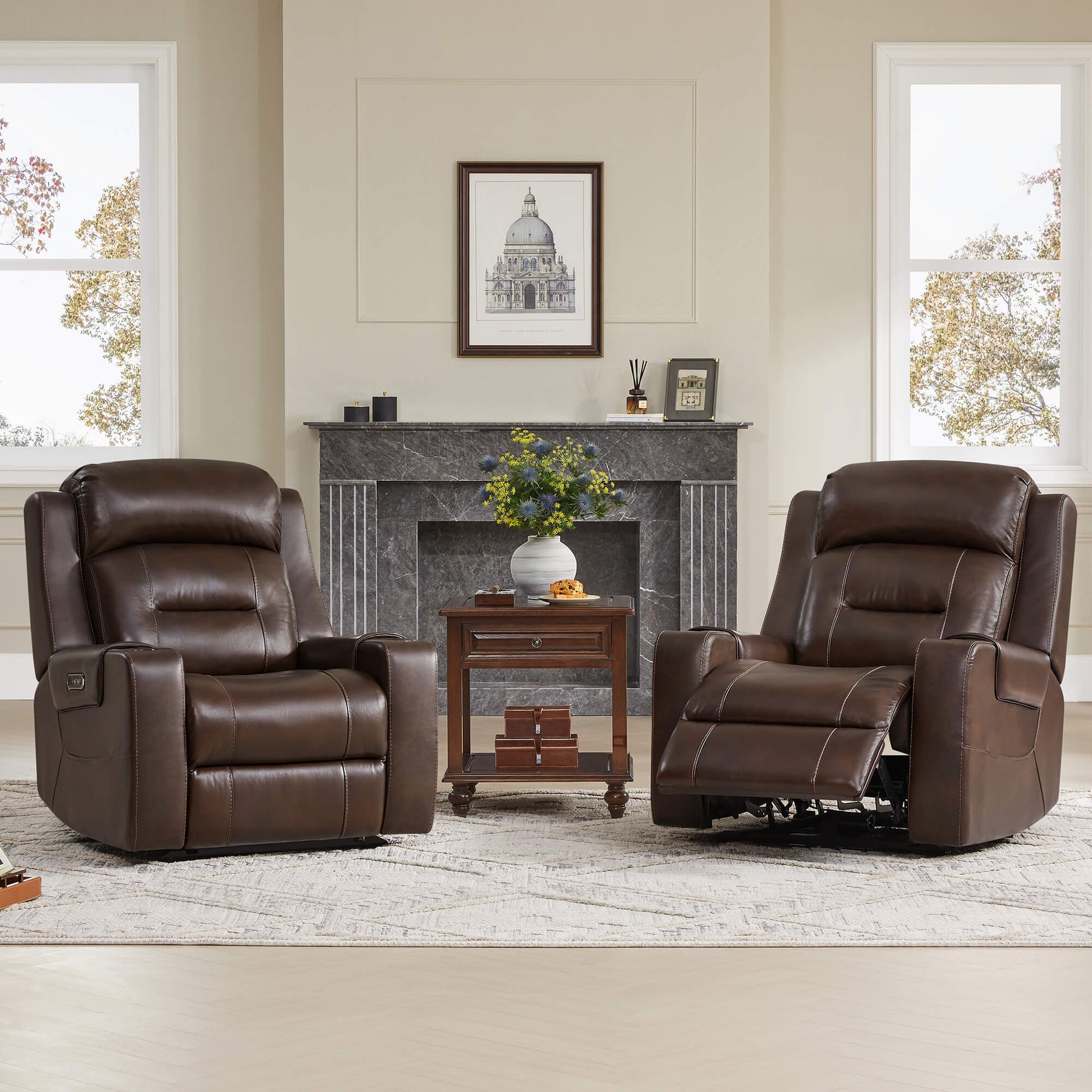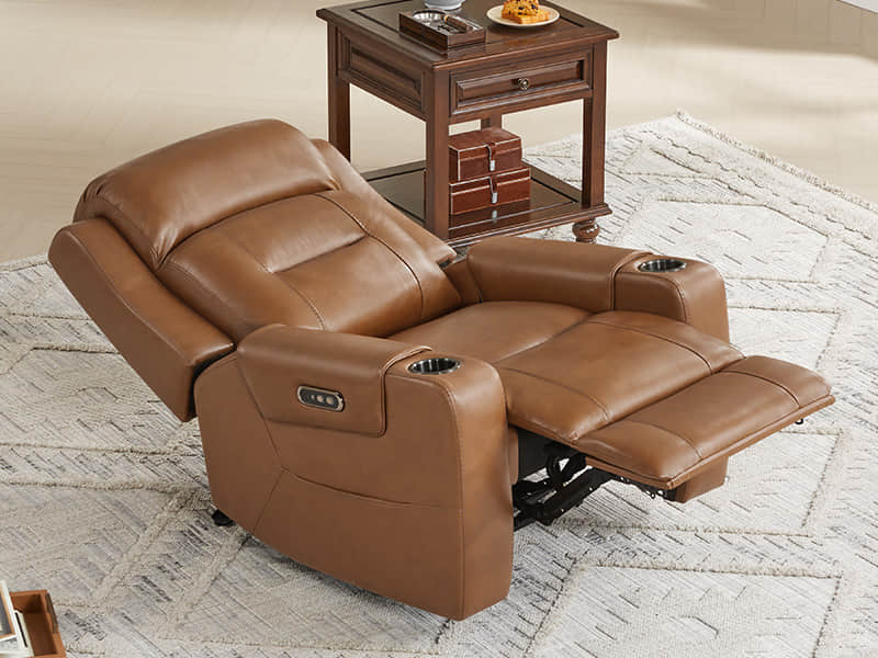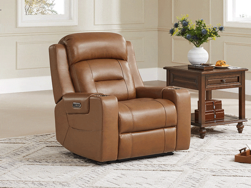 Designed for those who want it all: style, support, and serenity. The Garrison Genuine Leather Power Recliner brings tailored luxury into everyday life. Its dual motor system lets you adjust the footrest and headrest independently, while the lay flat position to 165° invites full body relaxation. Wrapped in premium top grain leather, it feels soft, durable, and easy to care for. Cup holders, side pockets, and built in USB charging keep everything you need within reach, blending comfort and convenience in every moment.