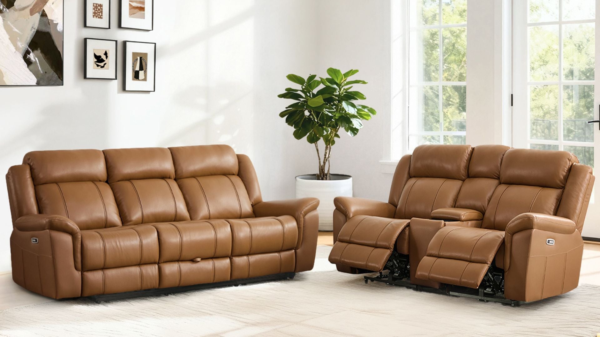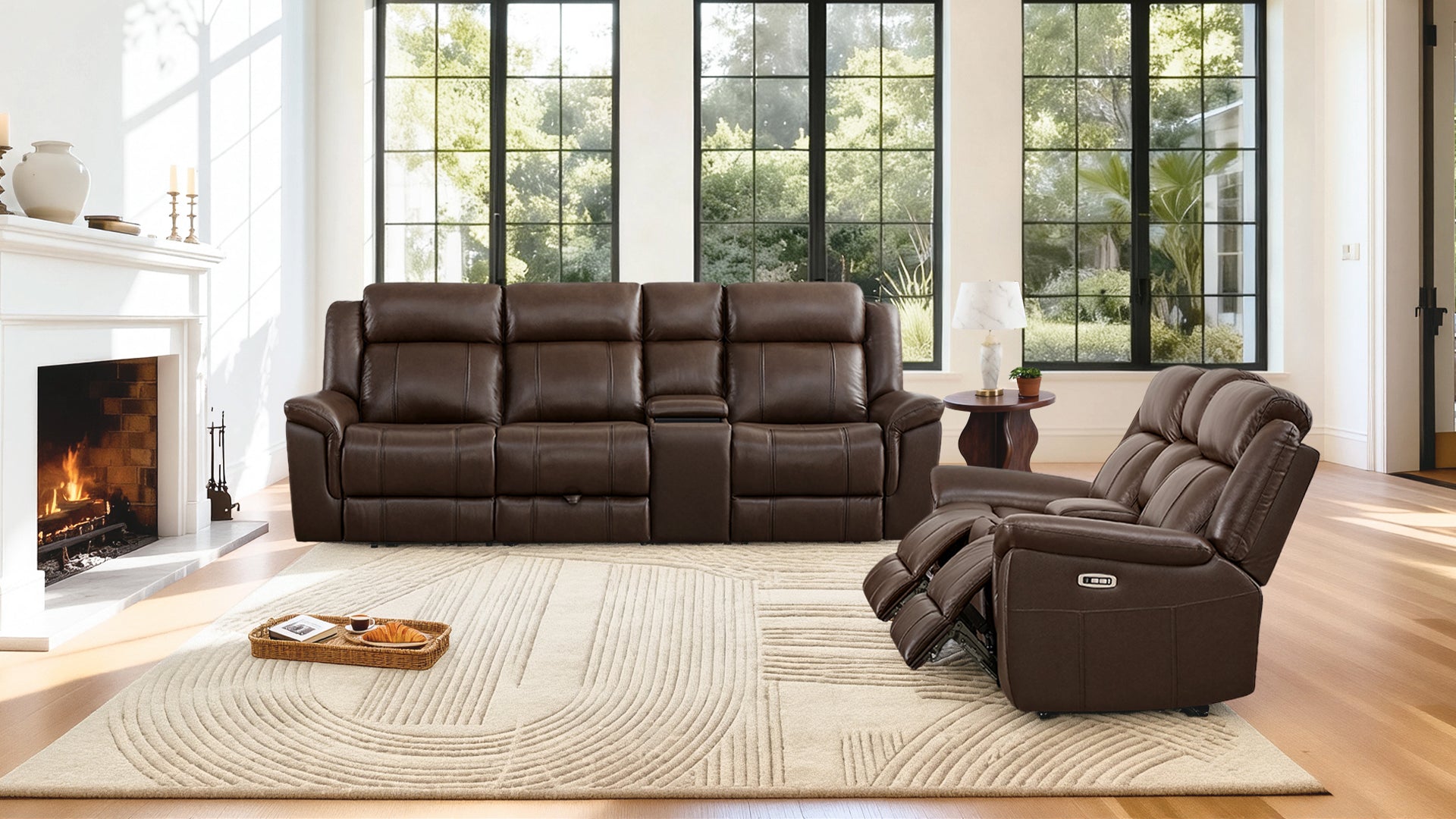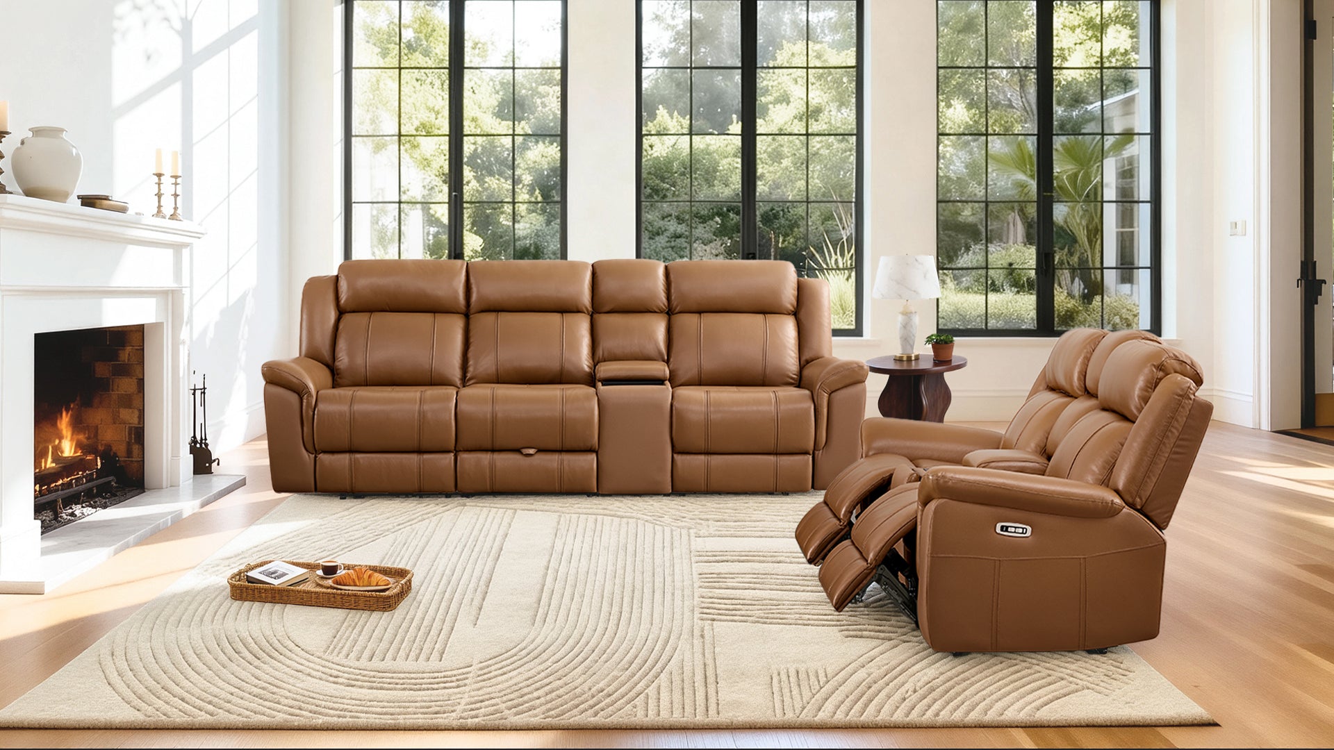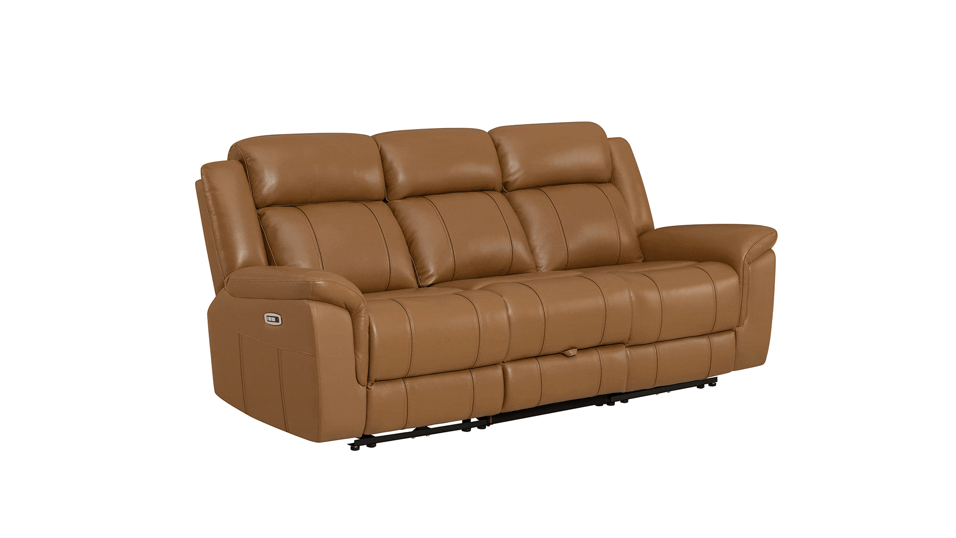 Meet Grady, a reclining sofa designed to bring a sense of ease into your everyday moments. Its plush, cloud-like padding invites you to unwind the moment you sit down, while dual motors gently adjust the backrest, footrest, and headrest to the position that feels just right. Soft top-grain leather adds a warm, tactile touch to your home, and the wall-hugger design makes Grady feel at home even in smaller spaces. Thoughtfully crafted and quietly supportive, it’s comfort you’ll look forward to sinking into.