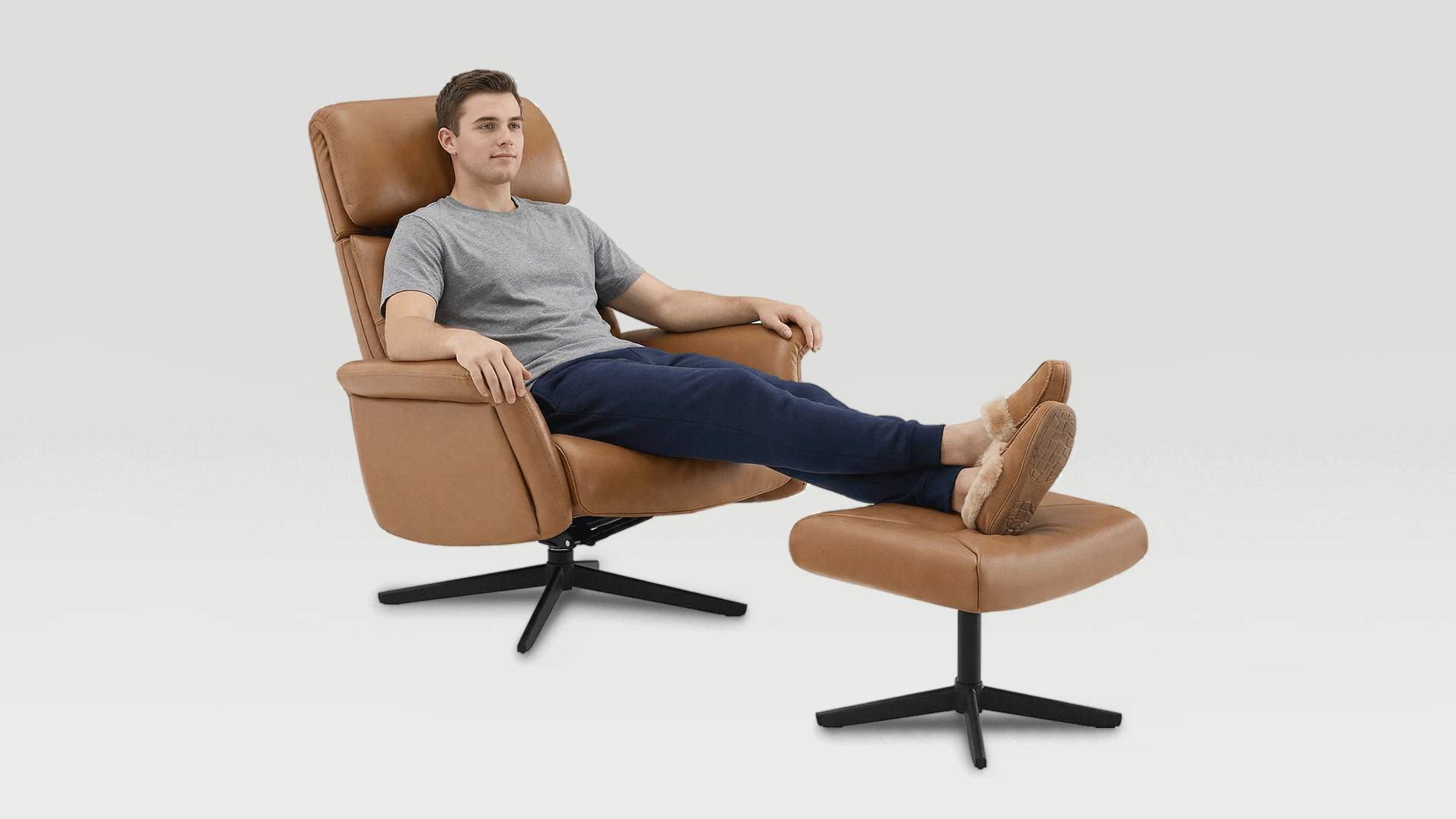 Lean back and enjoy pure relaxation with the Cary Reclining Swivel Chair and Ottoman. Designed for the modern home office or a quiet reading nook, this set balances a sleek, contemporary silhouette with an effortless, self-weight reclining system that responds to your body's natural movement. No matter you are hosting a casual meeting or winding down after a long day, the premium top-grain leather and double-layered foam provide a refined seating experience that is as durable as it is inviting.