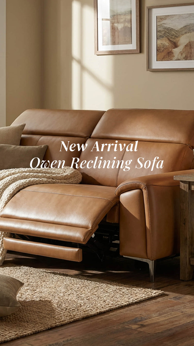 In Light Grey, the Owen Power Reclining Sofa creates a calm, contemporary backdrop. With its supple feel and gentle tones, thick top-grain leather brings approachable elegance.