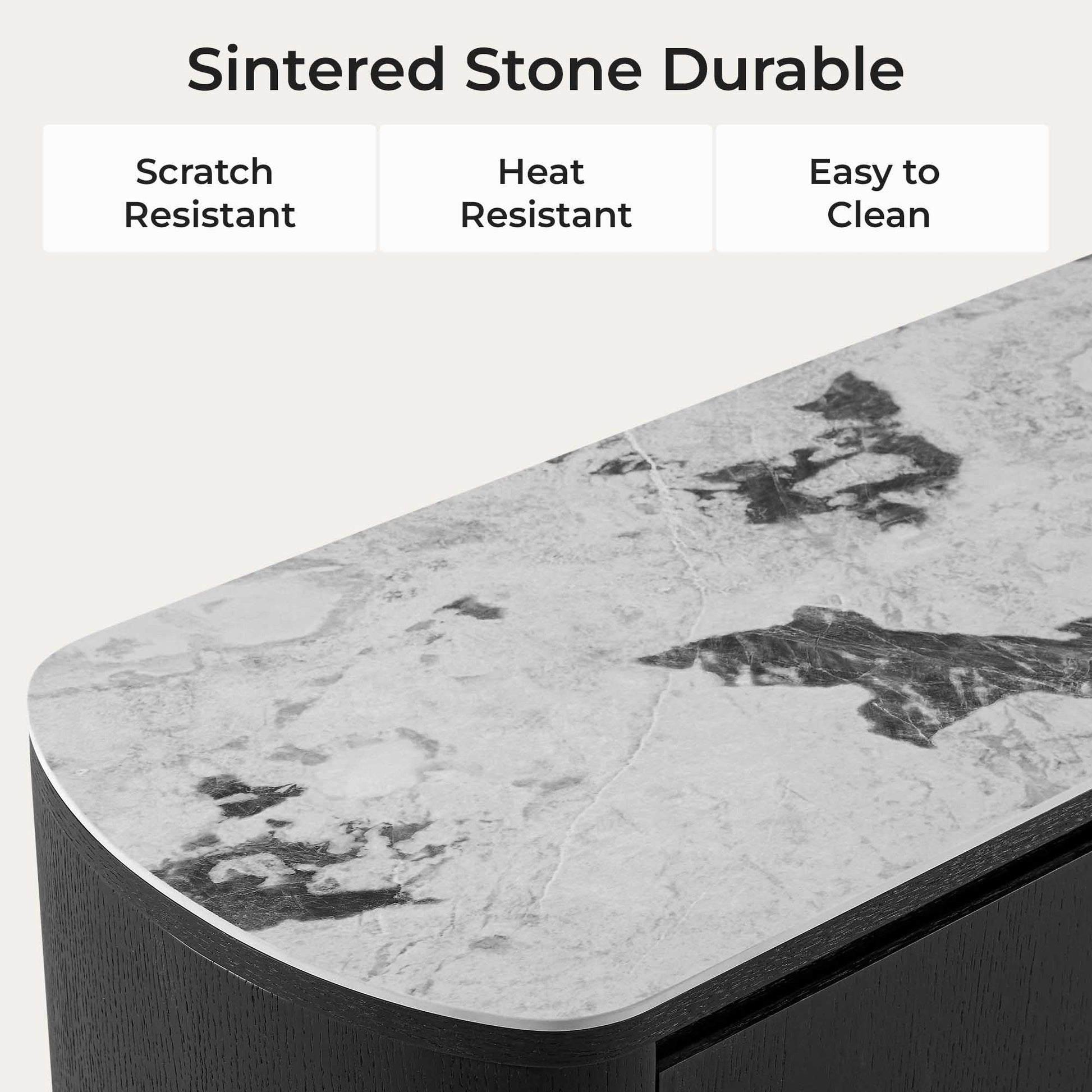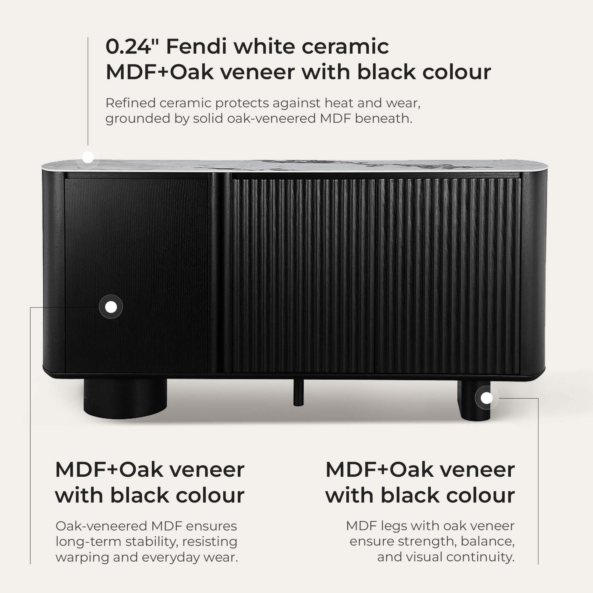 This Rex Contemporary Sideboard showcases exceptional texture and value through its premium matte black finish. The design skillfully blends minimalist aesthetics with practical functionality. Whether placed in the dining room, living room, or entryway, this buffet serves as the perfect focal point, elevating the overall style of your home. It is not just a functional piece of furniture but also a work of art that reflects your taste and status, infusing your living space with a touch of modern luxury.
