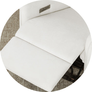 With a Leggett & Platt metal frame, the Mila recliner allows you to raise the footrest before reclining, offering the perfect position for relaxing, reading, or watching TV while bonding with your baby.