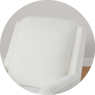 The Mila nursery recliner seamlessly combines oversized, organic proportions with a natural solid wood base, offering a design that’s both elegant and floor-friendly.