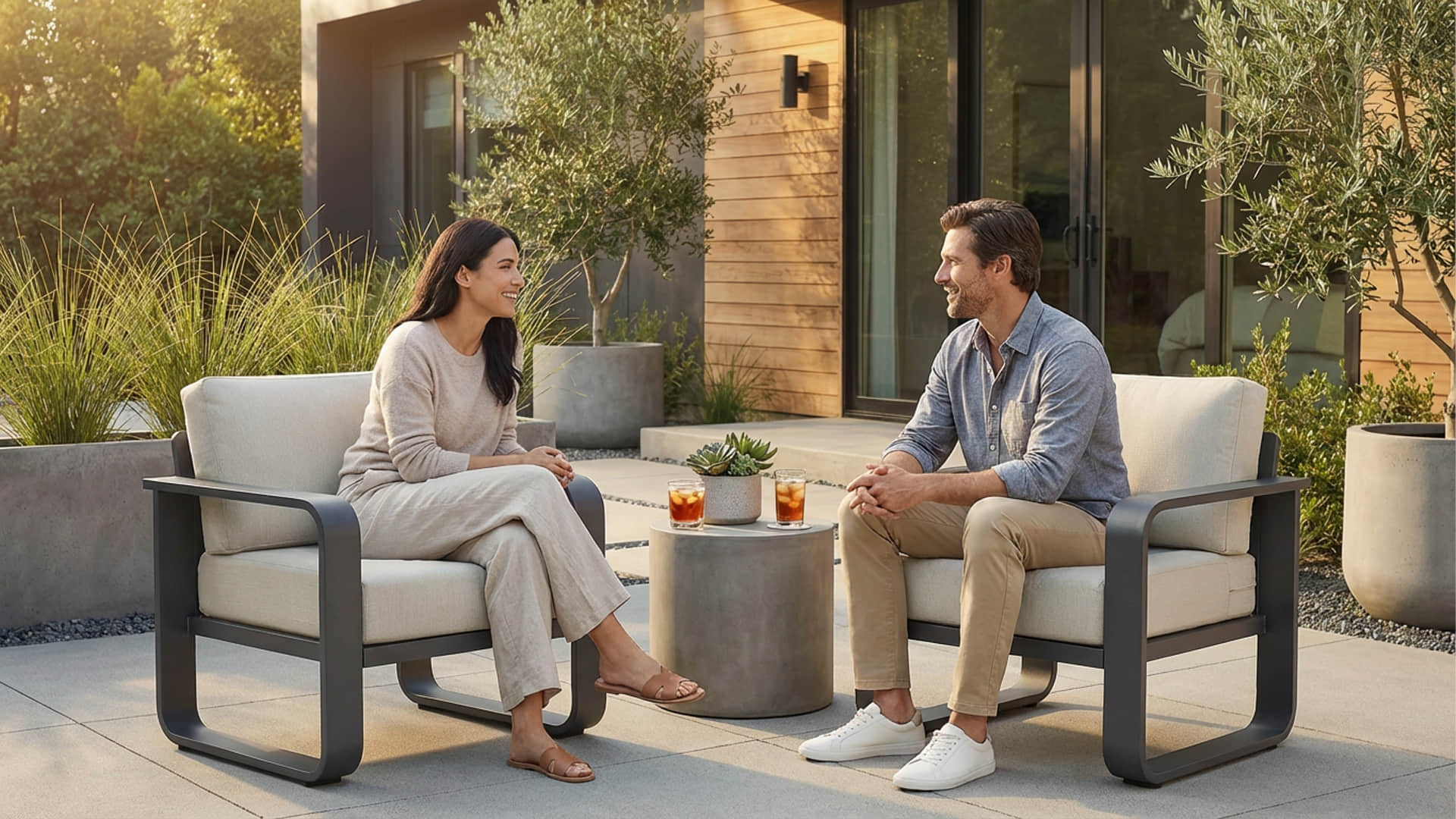 The Dylan modular outdoor set is designed for slow mornings, long conversations, and effortless outdoor living. Soft, rounded silhouettes invite you to settle in, while the rustproof aluminum frame and durable Olefin cushions stand up to everyday weather. Modular flexibility makes it easy to shape your space, whether you’re furnishing a compact patio or an open backyard lounge.