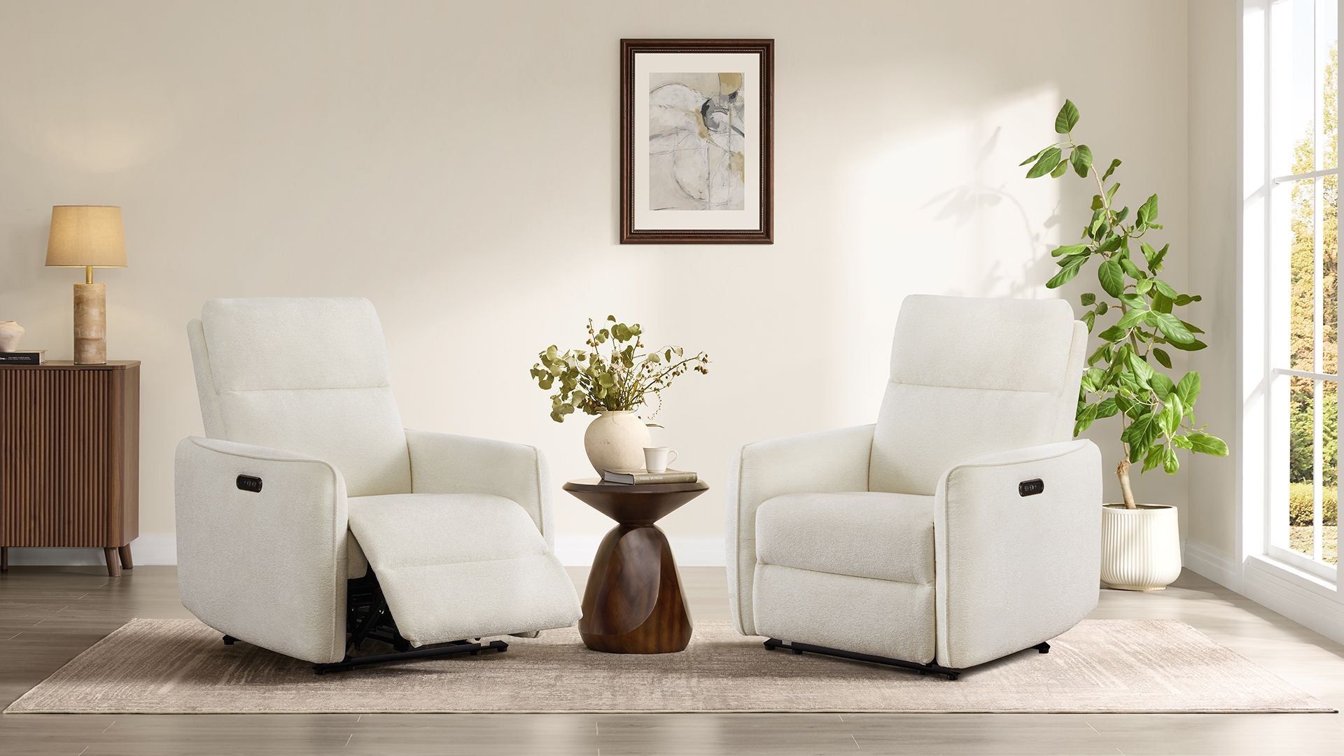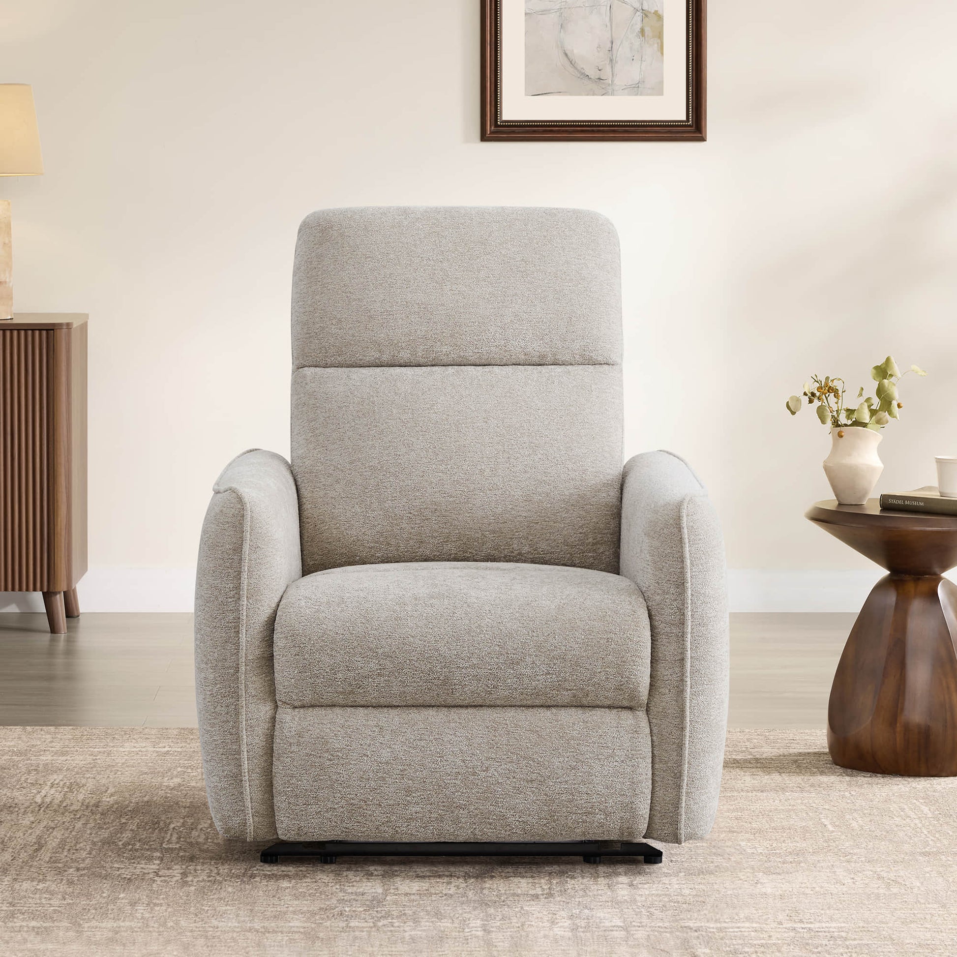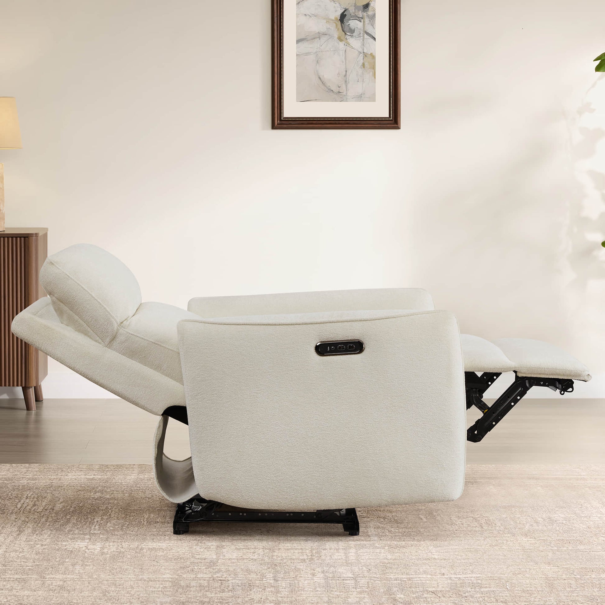 Stella brings together fluid modern curves and deeply customizable comfort, creating a recliner that feels as inviting as it looks. Its dual-motor system personalizes your head and neck support while guiding a smooth recline all the way to a restful 165° lay-flat position. Soft, tailored fabric and refined lines add warmth to any room, while resilient foams, a corner-blocked wooden frame, and a quiet UL-certified motor ensure durability and ease for everyday living.