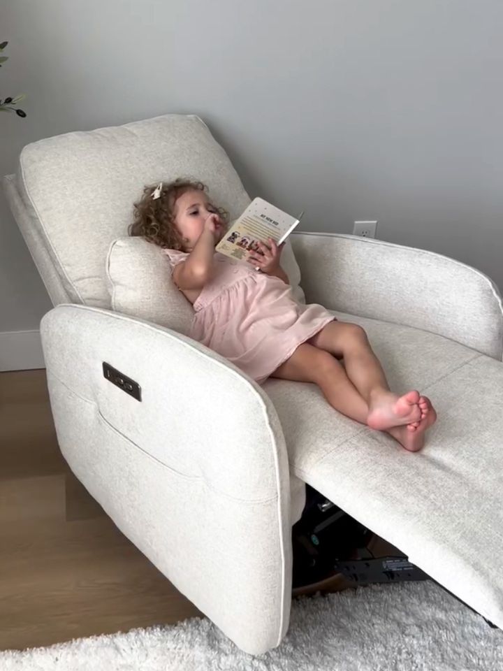 From sunrise snuggles to bedtime books, this chair moves with you—gliding quietly, swiveling gently, and reclining at the touch of a button. Built for daily routines, and the pauses in between.
