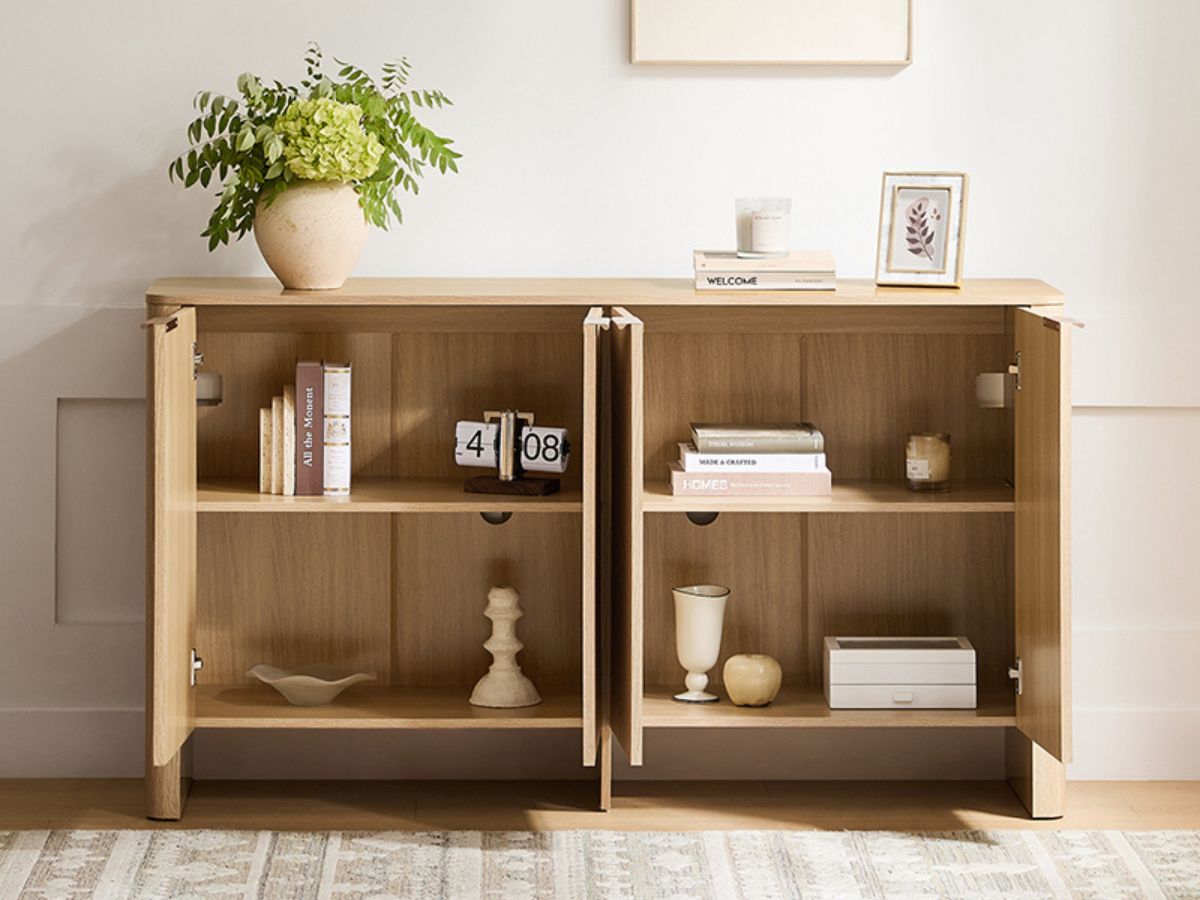 Stylish yet welcoming, Bowen makes practical storage feel like part of your home's story. At 61.4" wide, it anchors dining or living spaces with its clean lines, softened rounded edges, and choice of faux marble or wood grain finishes. Inside, adjustable shelves offer flexible storage for dinnerware, décor, or daily essentials. Crafted from eco-friendly panels with a durable, scratch- and moisture-resistant surface, it combines timeless style with family-friendly durability for a lasting centerpiece you’ll love.