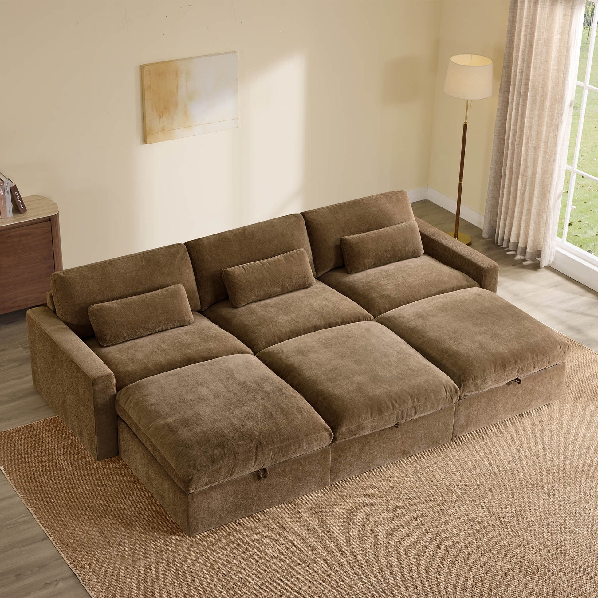 Ivy 6-Seat Performance Fabric Bed Modular Sectional Sofa with Storage Ottoman