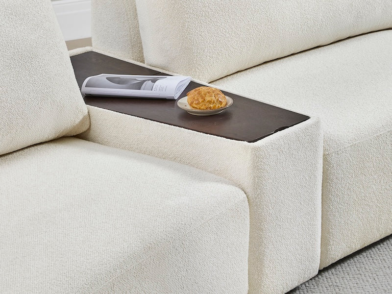 The Grace Console Table’s unique trapezoid shape brings a playful and lively touch to any room. Designed to complement the Grace Sofa, the table features a padded outer layer — the ideal spot to rest your arm — as well as a hidden storage compartment for convenience.