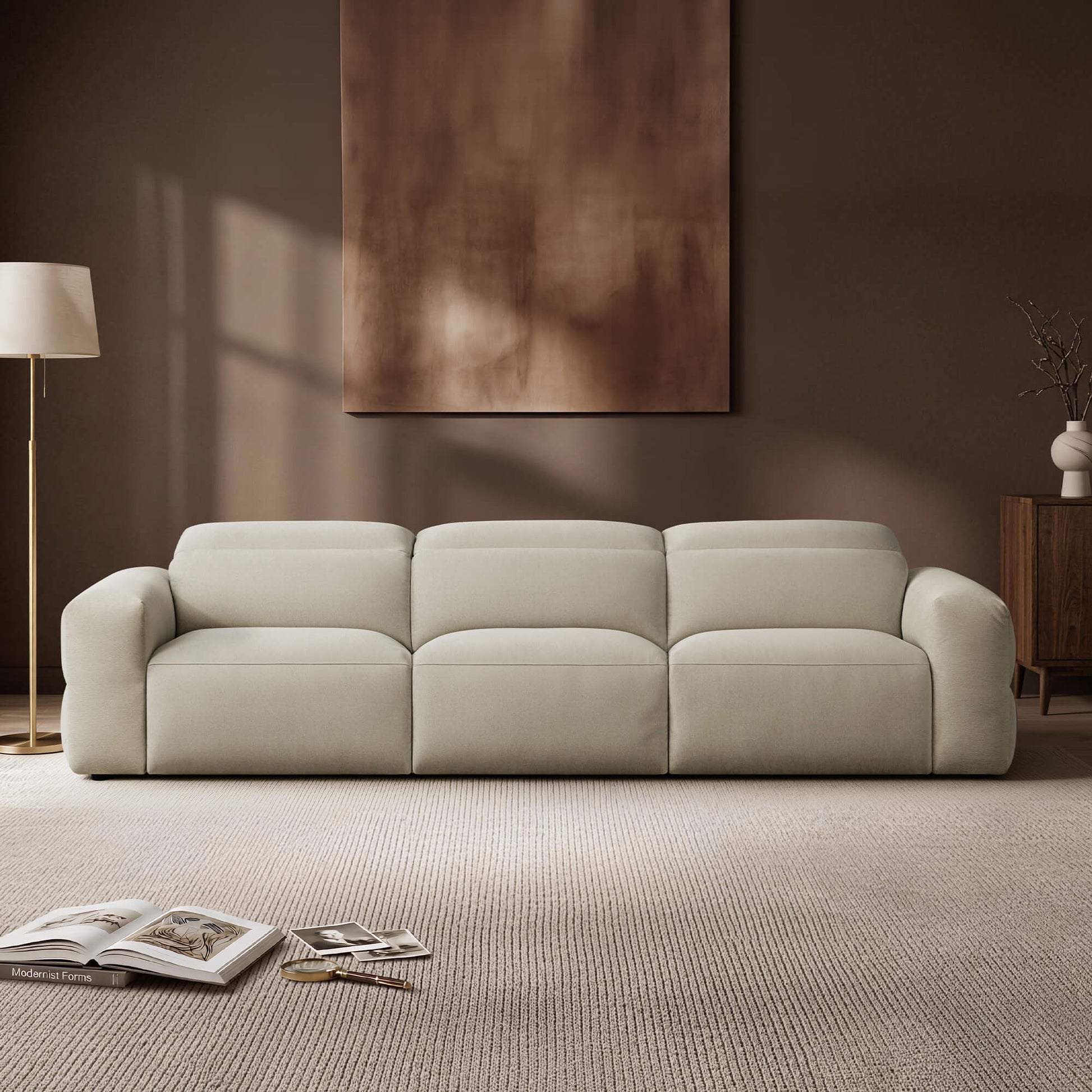 Soft oatmeal-beige tone with a light, inviting look that brings warmth and ease to the room.