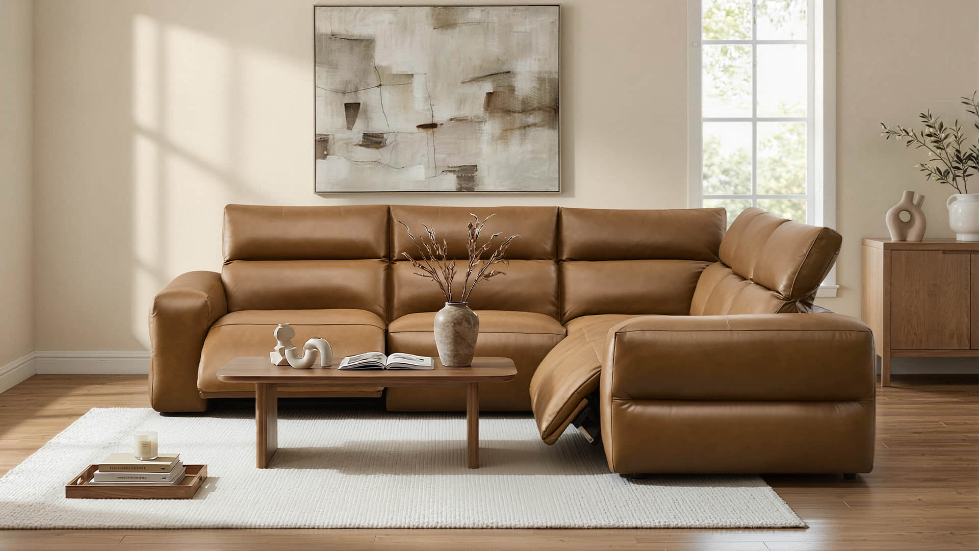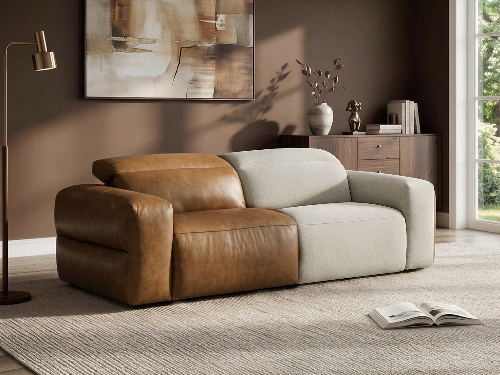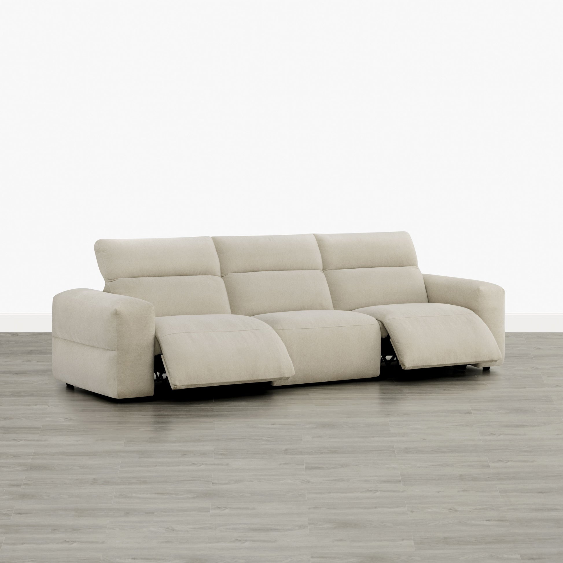 The Haley modular reclining sofa brings a quiet sense of ease to modern living spaces. A dual-motor system works alongside an independently adjustable headrest, offering tailored support that adapts naturally to how you sit, read, or unwind. With flexible modular design and refined upholstery in chenille or top-grain leather, it balances comfort, structure, and everyday versatility in a clean, architectural form..