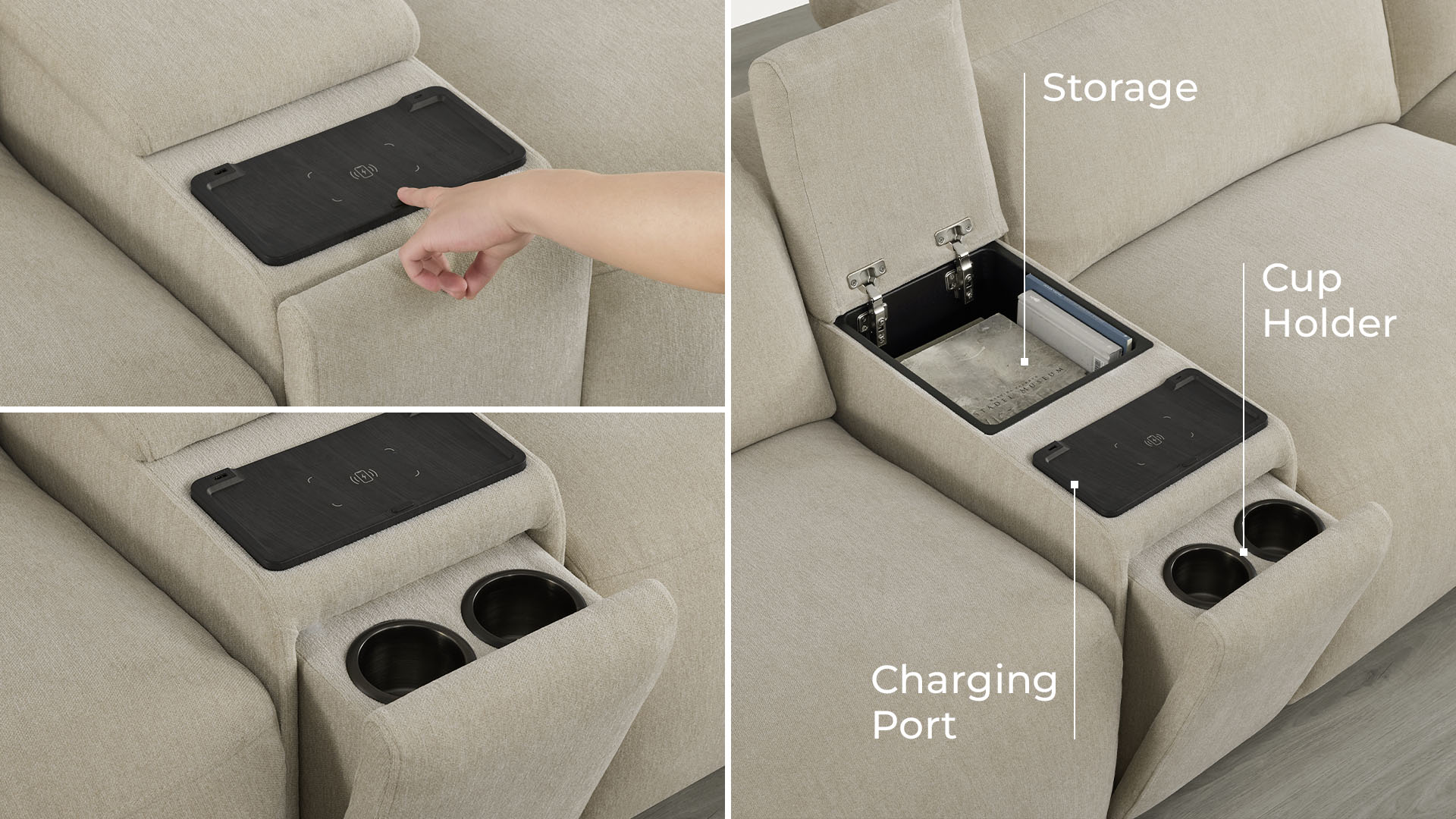 Integrated Storage: Keeps remotes, small items, and daily essentials neatly organized within easy reach.