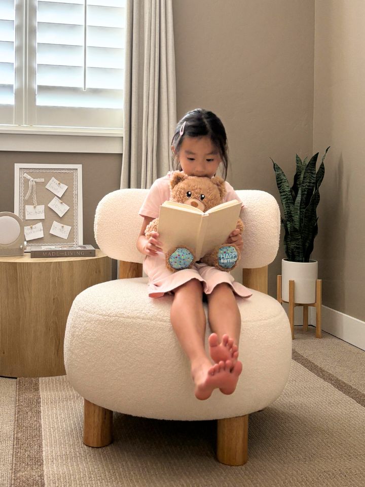 This chair? Total teddy bear vibes. Wrapped in fuzzy faux sherpa and standing on chunky walnut legs, it’s equal parts adorable and dependable. The bounce from the springy seat is chef’s kiss, and its chubby silhouette makes it the ultimate cozy corner companion. Cute, comfy, and way more supportive than your think!