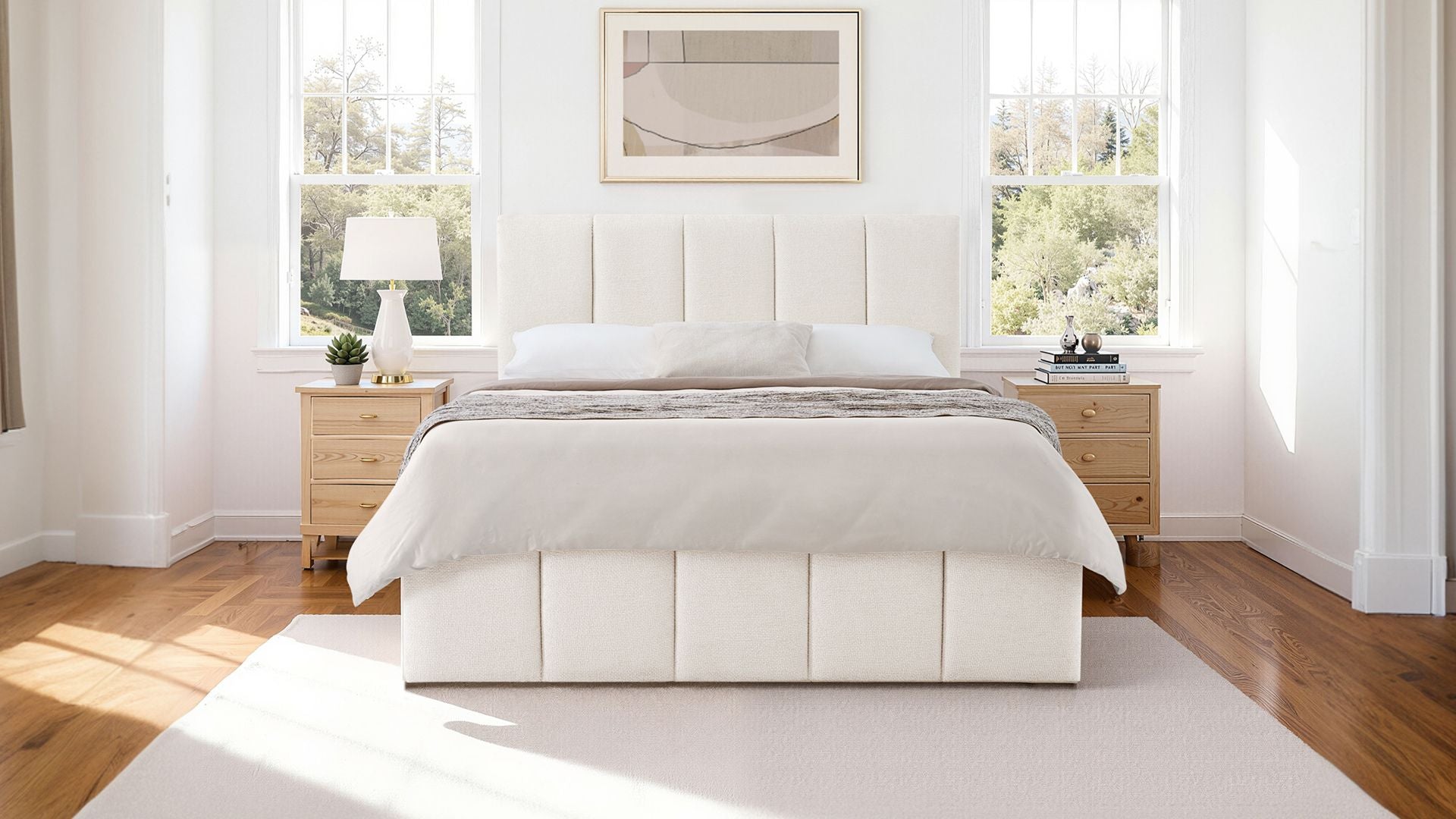 Vertical stitching across headboard and footboard creates symmetry and texture.