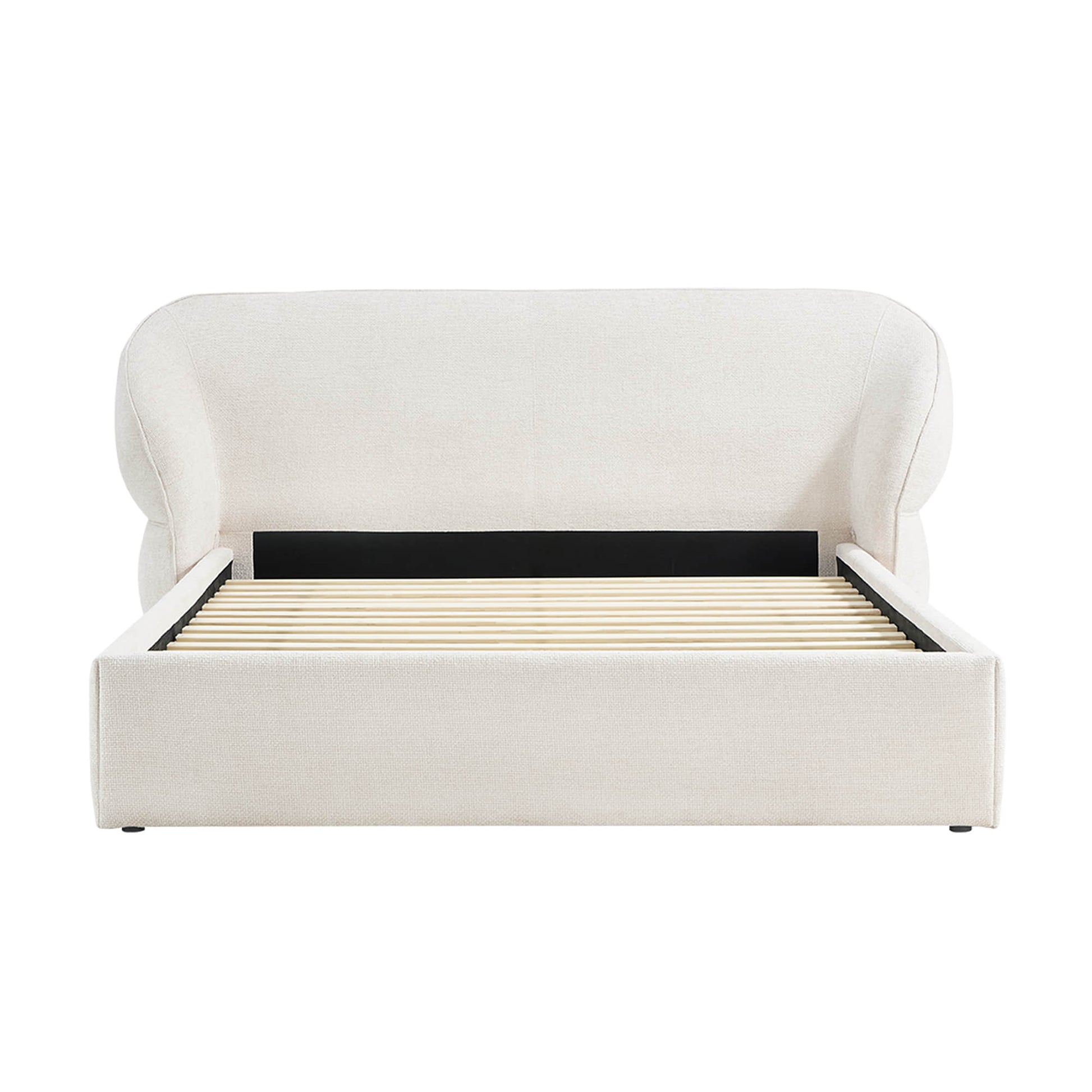 Rounded and inviting, the Zinnia bed makes your bedroom both stylish and functional. Designed for winding down, its wingback headboard offers comfortable support for reading, scrolling, or late-night shows. Upholstered in plush waterproof chenille fabric, it balances tactile warmth with everyday practicality. Beneath the upholstery, a sturdy wood frame and reinforced slat system provide reliable support without box spring, creating a calm, modern foundation for rest, night after night.