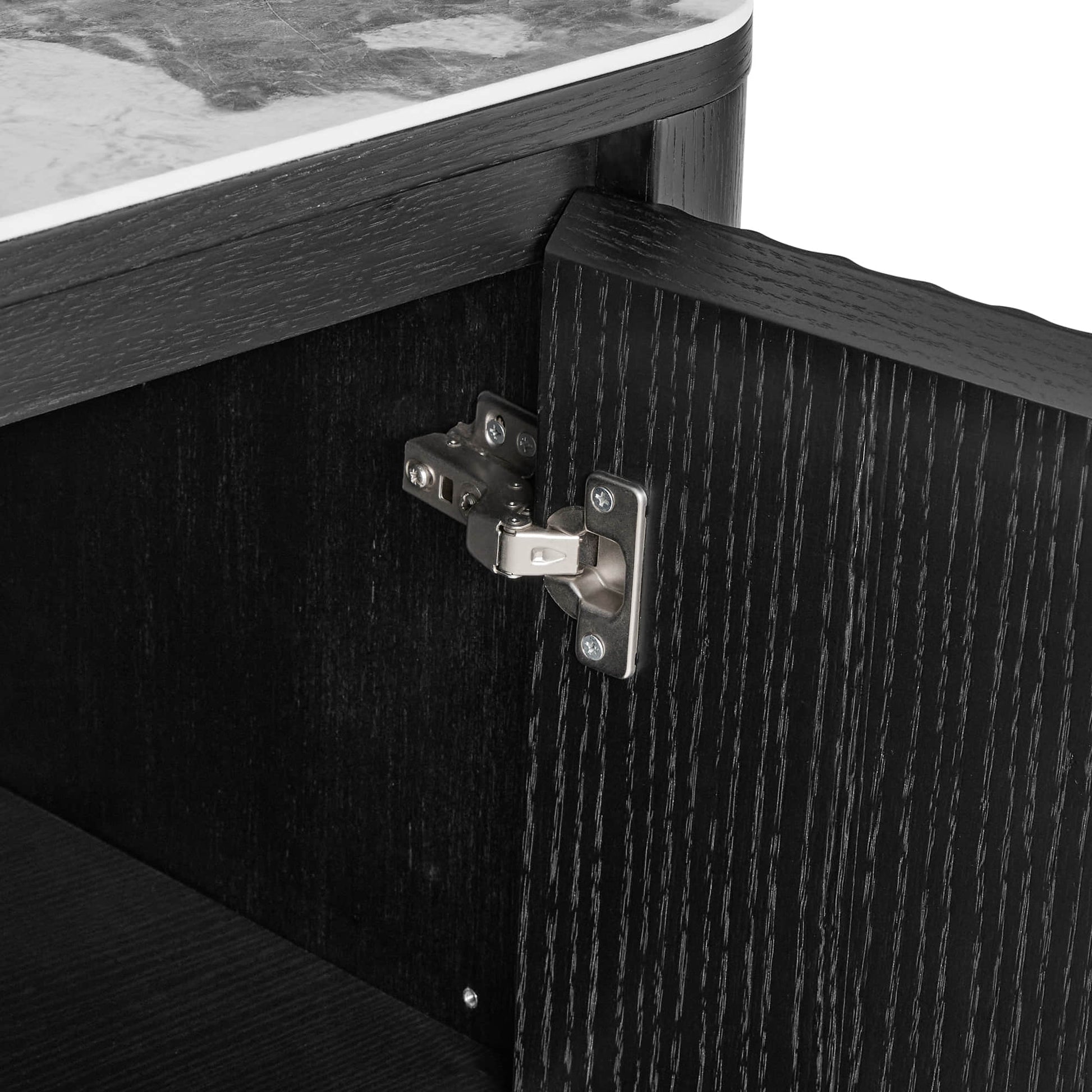 This Rex Contemporary Sideboard showcases exceptional texture and value through its premium matte black finish. The design skillfully blends minimalist aesthetics with practical functionality. Whether placed in the dining room, living room, or entryway, this buffet serves as the perfect focal point, elevating the overall style of your home. It is not just a functional piece of furniture but also a work of art that reflects your taste and status, infusing your living space with a touch of modern luxury.